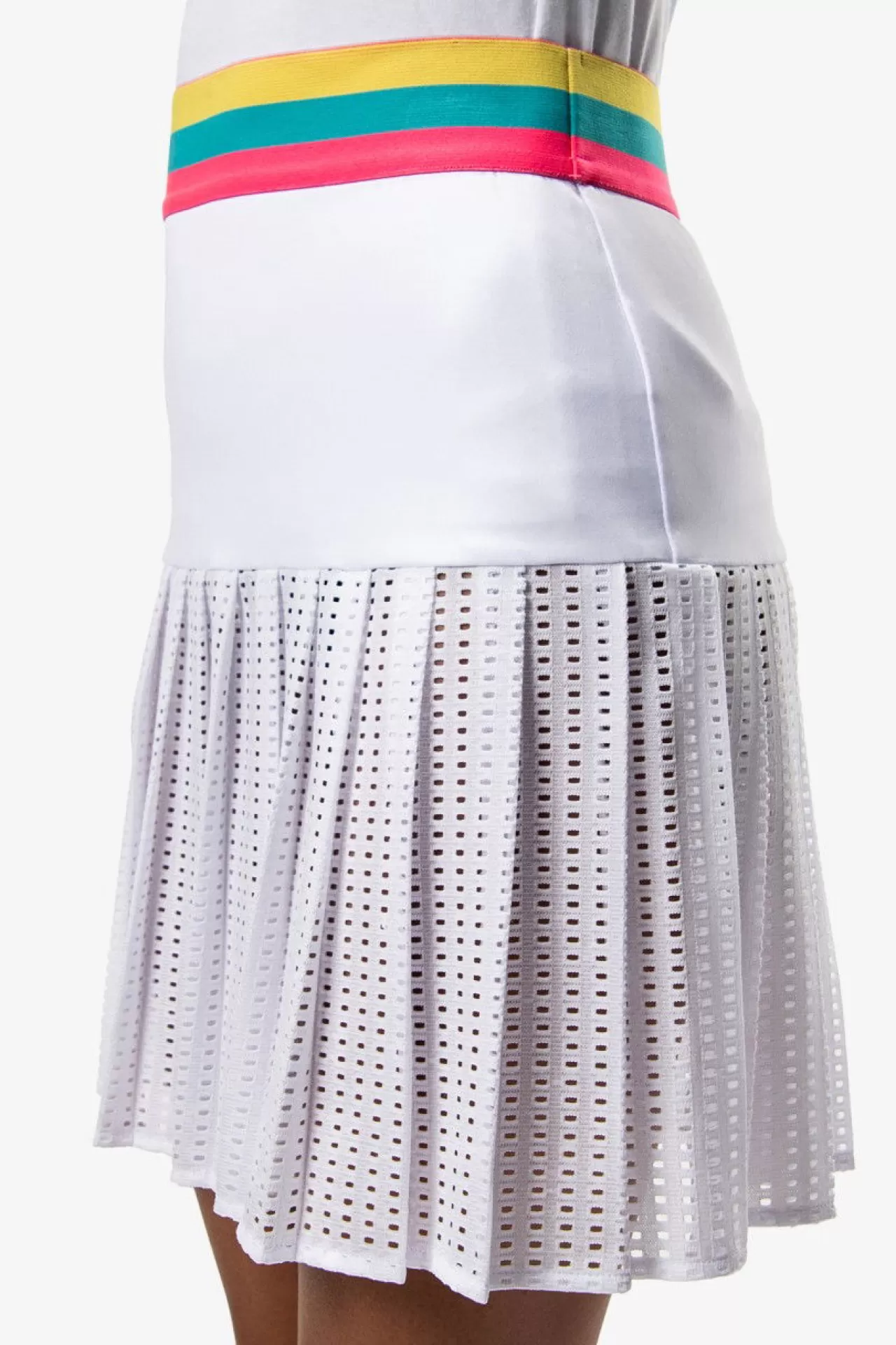 Für eine perfekte Figur am Green: sorgt dieser Golfrock aus einer sommerlichen Jersey-Ware kombiniert mit einem großen Plissee aus Lockstickerei im unteren Rockbereich. Der gestrickte Bund im Colour-Block-Style sorgt für einen bequemen Sitz. Die separaten Pants aus einer leichten Jersey-Qualität hat seitlich aufgesetzte Taschen. Der Fit: sportiv locker.