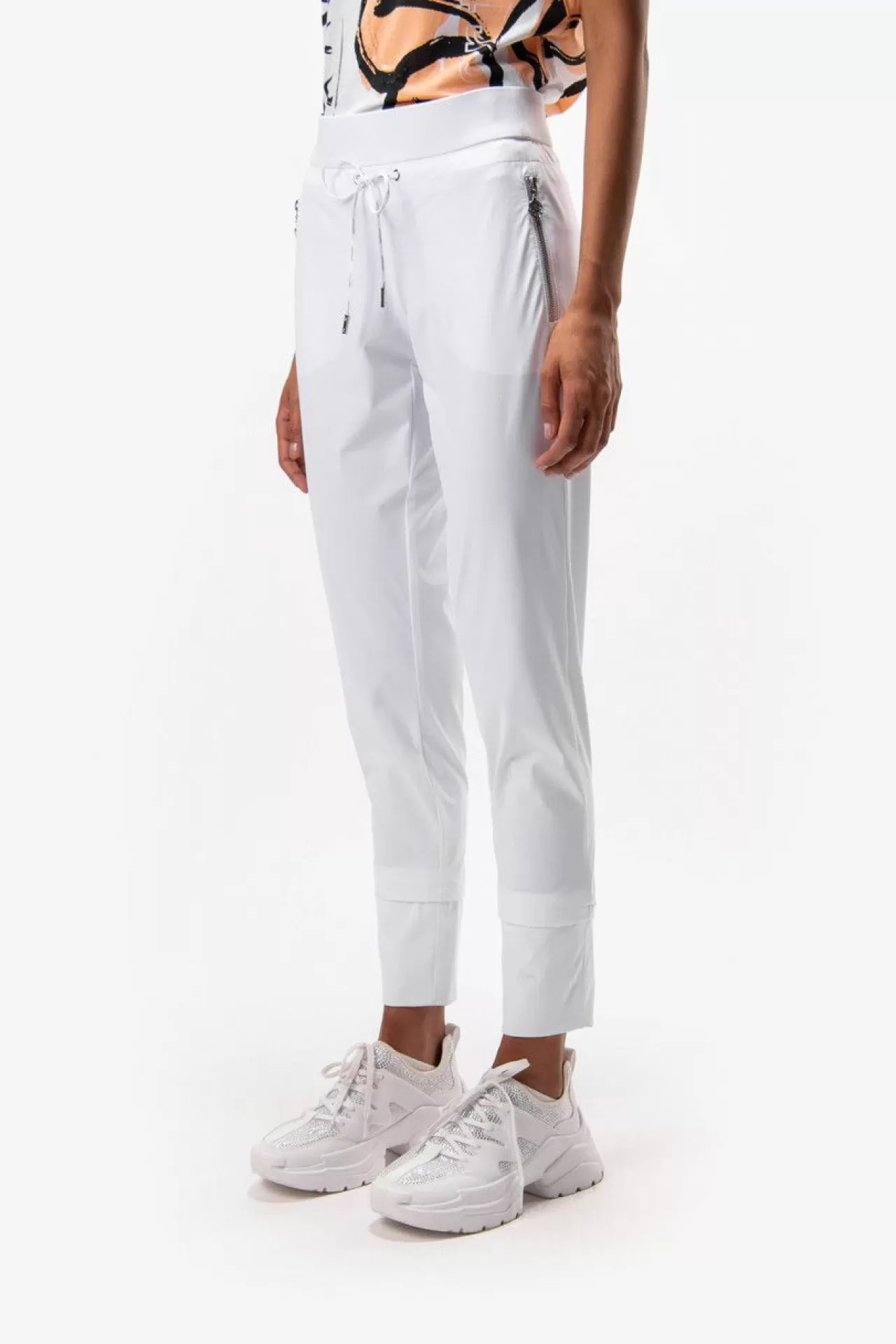 Komfortabel & trendy: ist diese Jogginghose aus einer hochwertigen Stretch-Qualität. Angesetzter Bund mit eingearbeitetem weichem Gummi kann individuell mit der Kordel in der Weite verändert werden. Zwei sichtbare Reißverschlusstaschen in der Vorderhose. Saum mit angesetzten Bündchen. Der Fit: Figur schmeichelnd