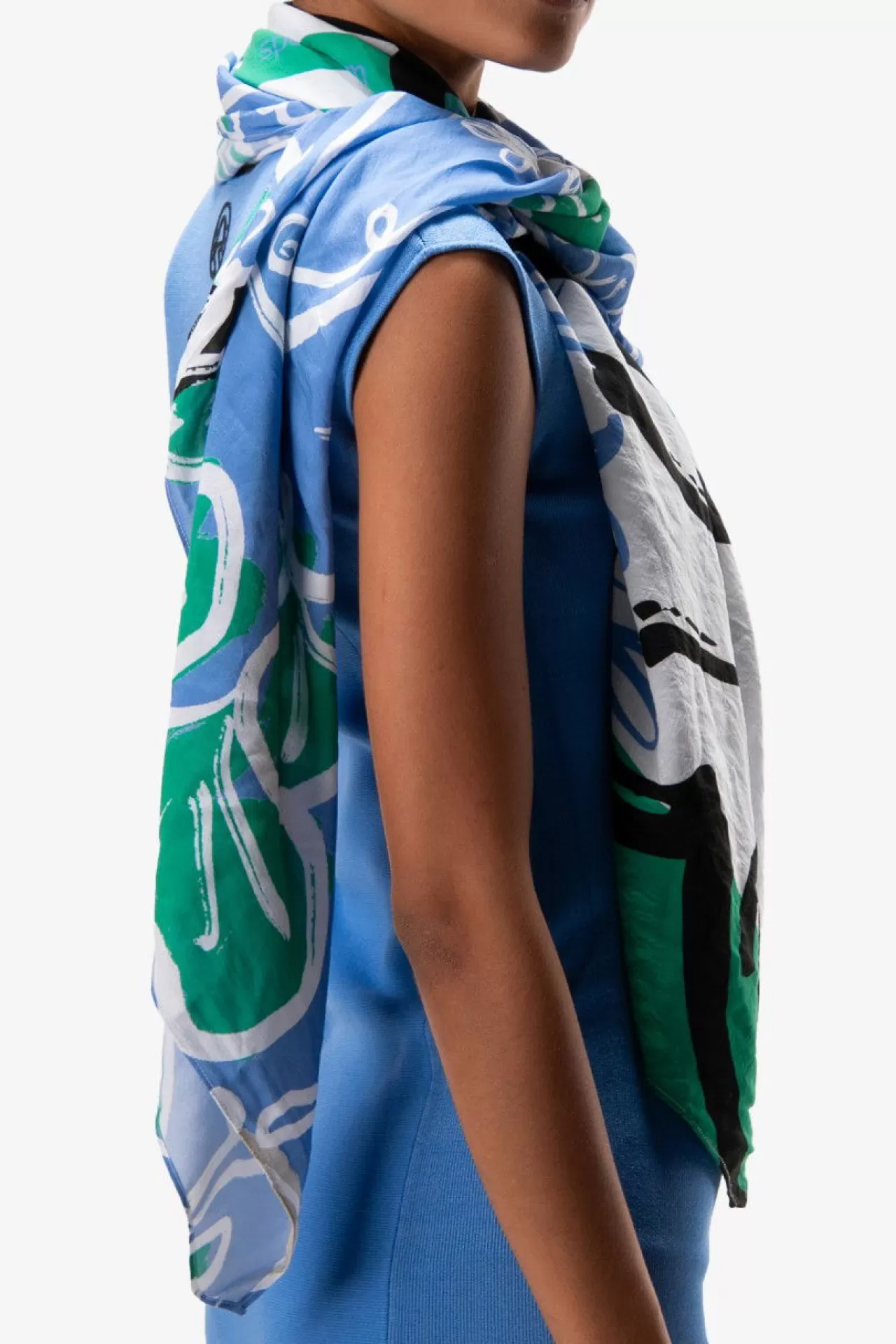 Sommerlicher Begleiter: das Tuch aus einer feinen Viskose-Qualität mit einem harmonischen Print-Mix.