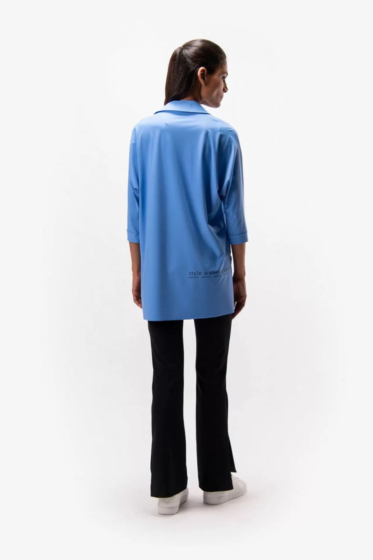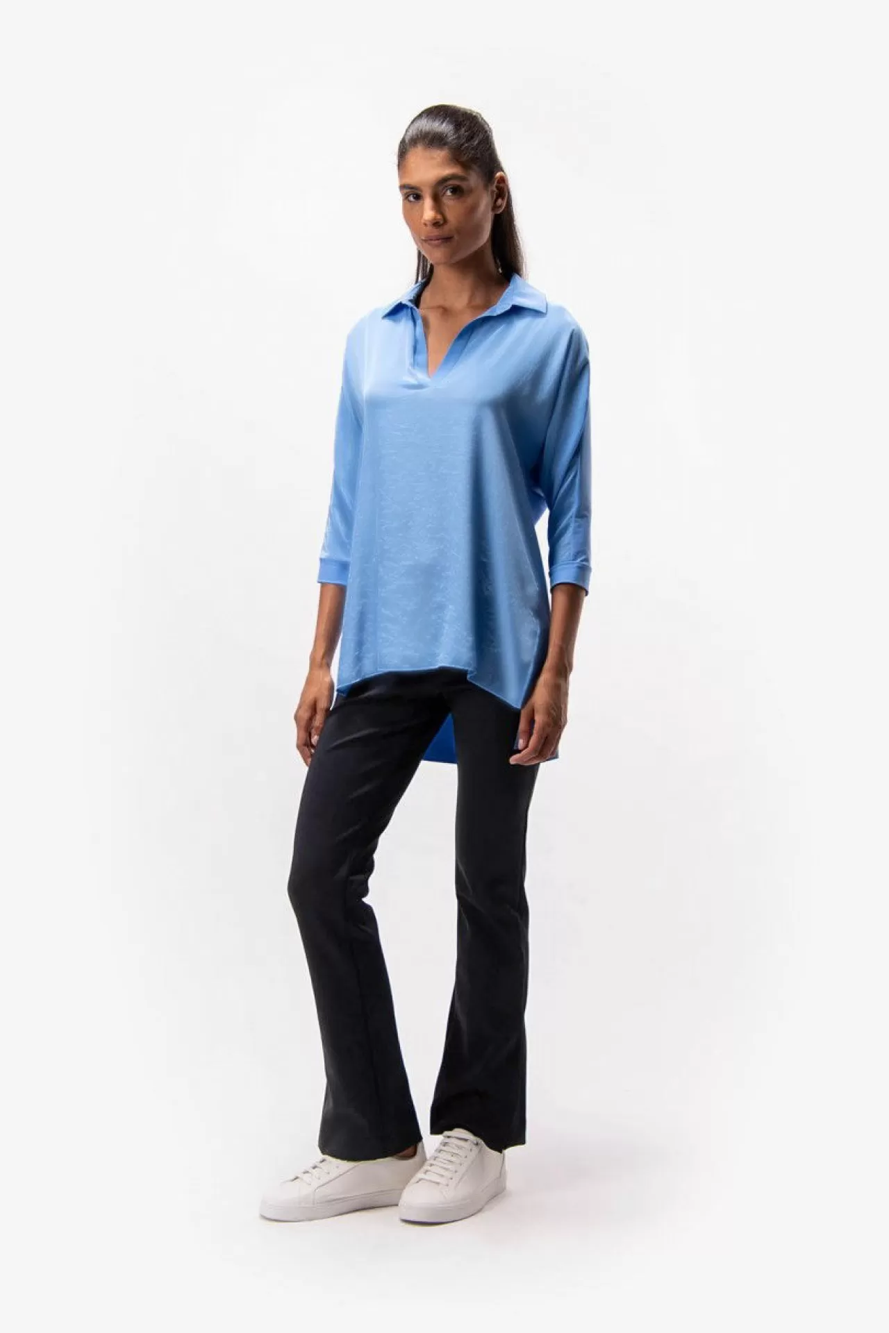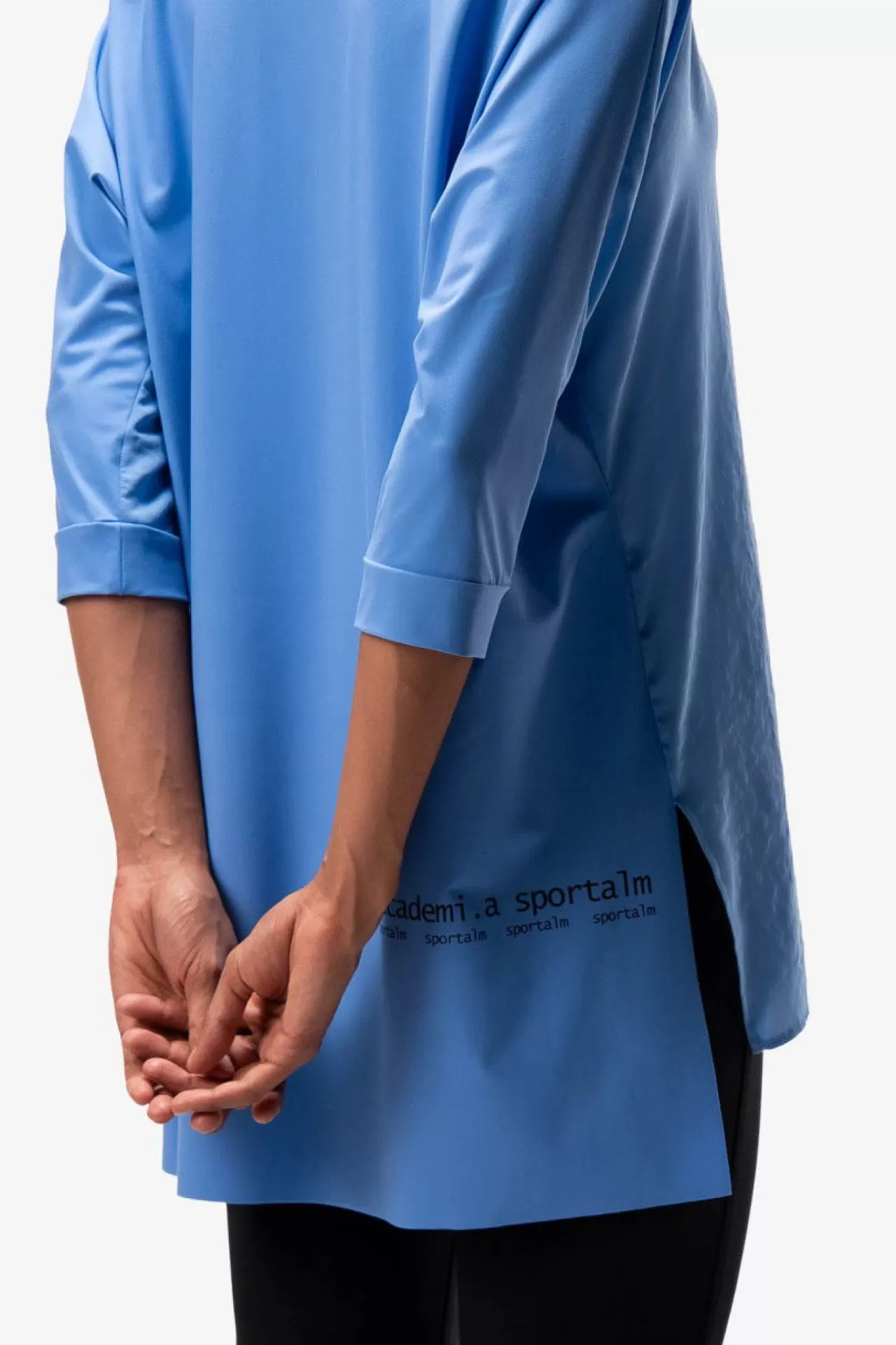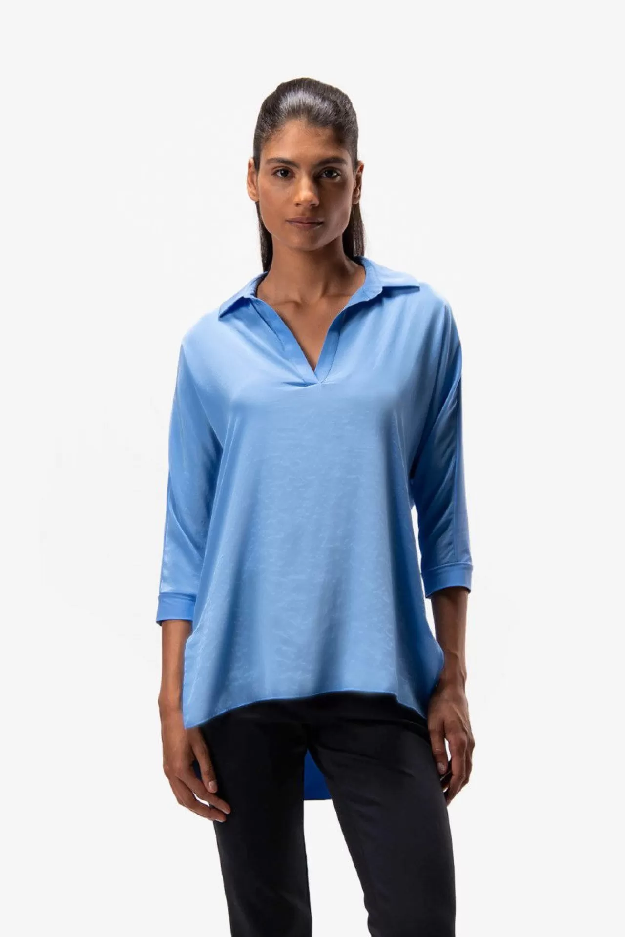 Perfekter Begleiter bei jeder Gelegenheit: diese Hemdbluse mit verkürzten, angeschnittenen Ärmeln aus einem sportiven Materialmix. Vorderteil aus einer fließenden, recycelten Kunstseide, Rückenteil aus einem dünnen Techno-Stretch, offenkantig verarbeitet. Kurzer Schlitz in der vorderen Mitte für ein bequemes Anziehen. Saum im Rückenteil verlängert und Schlitze in der Seitennaht. Der Fit: sommerlich locker