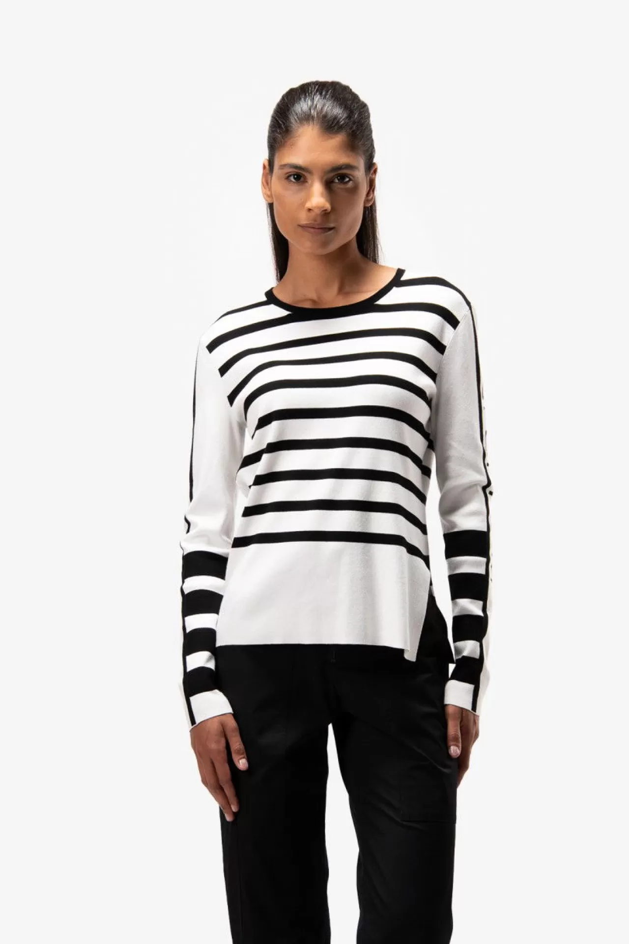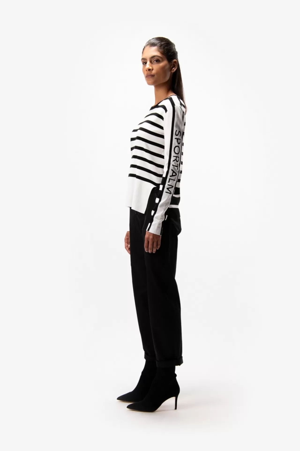 Must-have-Piece: dieser feine Ripp-Pullover mit Rundhalsausschnitt aus einer hochwertigen Viskose-Elasthan-Mischung. Feine Rippe garantiert einen hohen Tragekomfort. Black-and-White-Farbstellung macht ihn zum perfekten Kombi-Teil. Aufwendige Sportalm-Intarsien-Strickerei am Ärmel. Der Fit: Slim-Fit