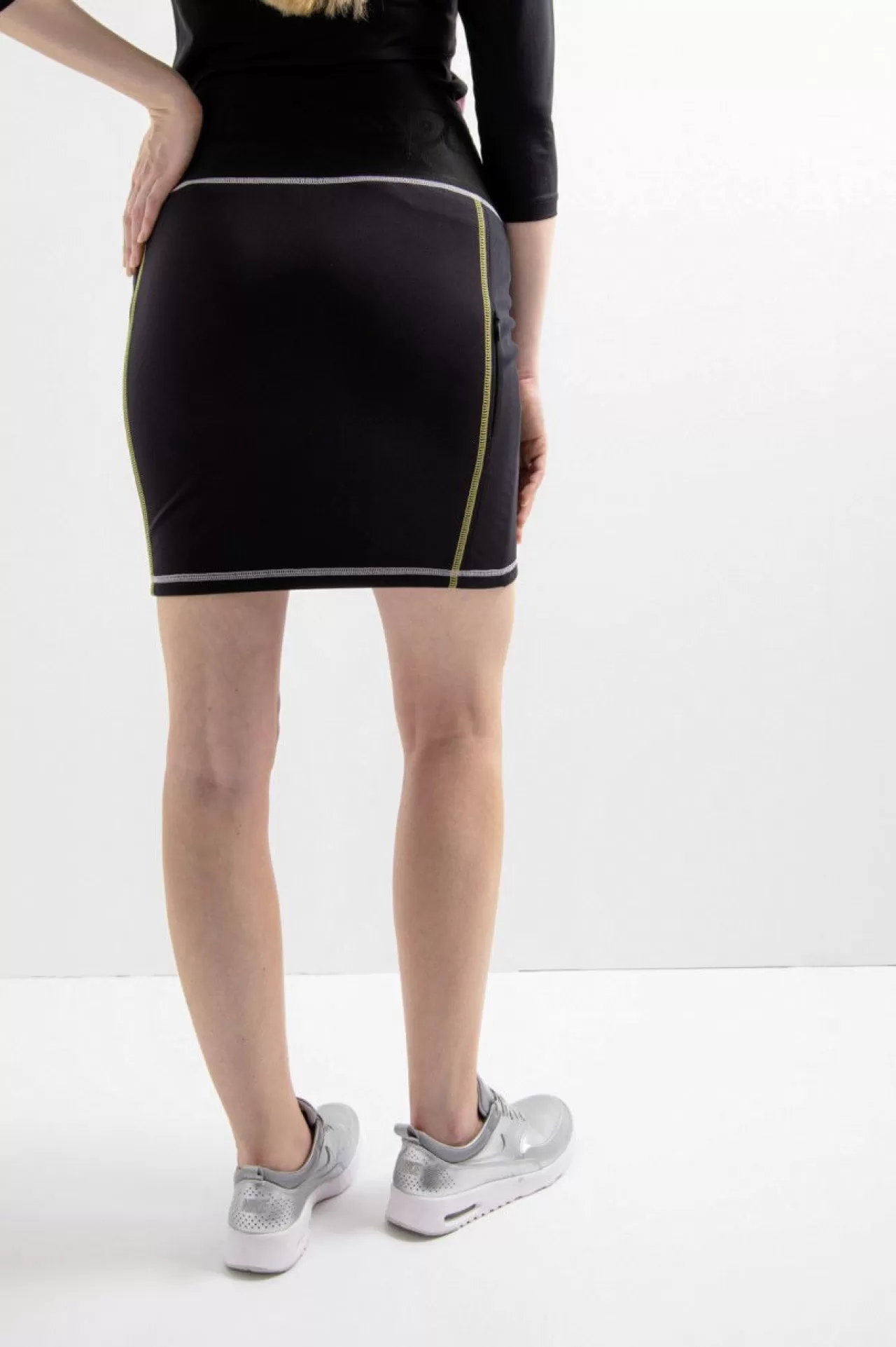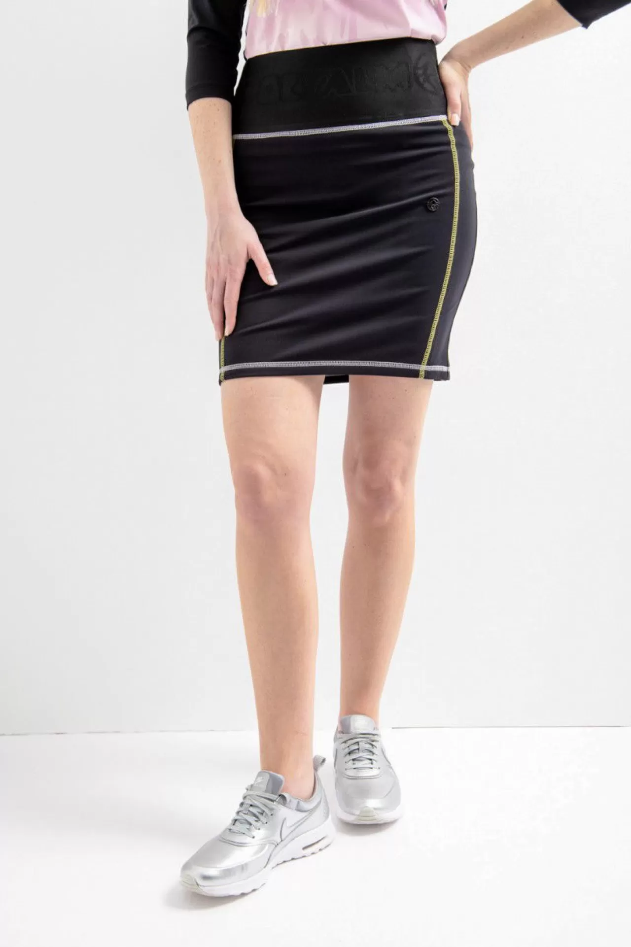 Ein Basic, auf das man sich auch an kühleren Tagen verlassen kann, ist dieser klassische Golfrock aus einer hochwertigen, innen angerauten Jersey-Qualität. Der weiche, breite Gummibund in der Taille garantiert einen perfekten Sitz, ohne einzuengen. Die farblich abgesetzten Flatlock-Nähte unterstreichen den sportiven Look. Im Rückenteil ist in der rechten Teilungsnaht eine nahtverdeckte Reißverschlusstasche eingearbeitet, die Platz für die wichtigen Kleinigkeiten bietet. Im Vorderteil ist eine hochwertige Sportalm-Niete auf der linken Seite platziert.