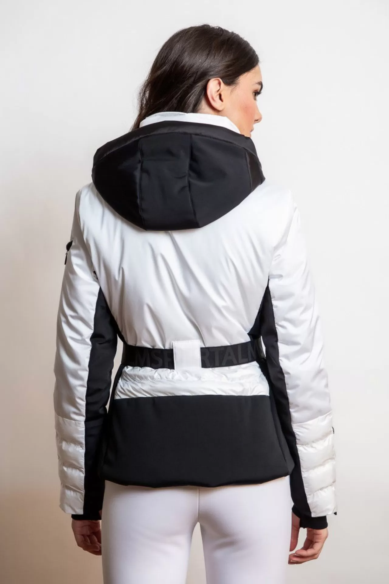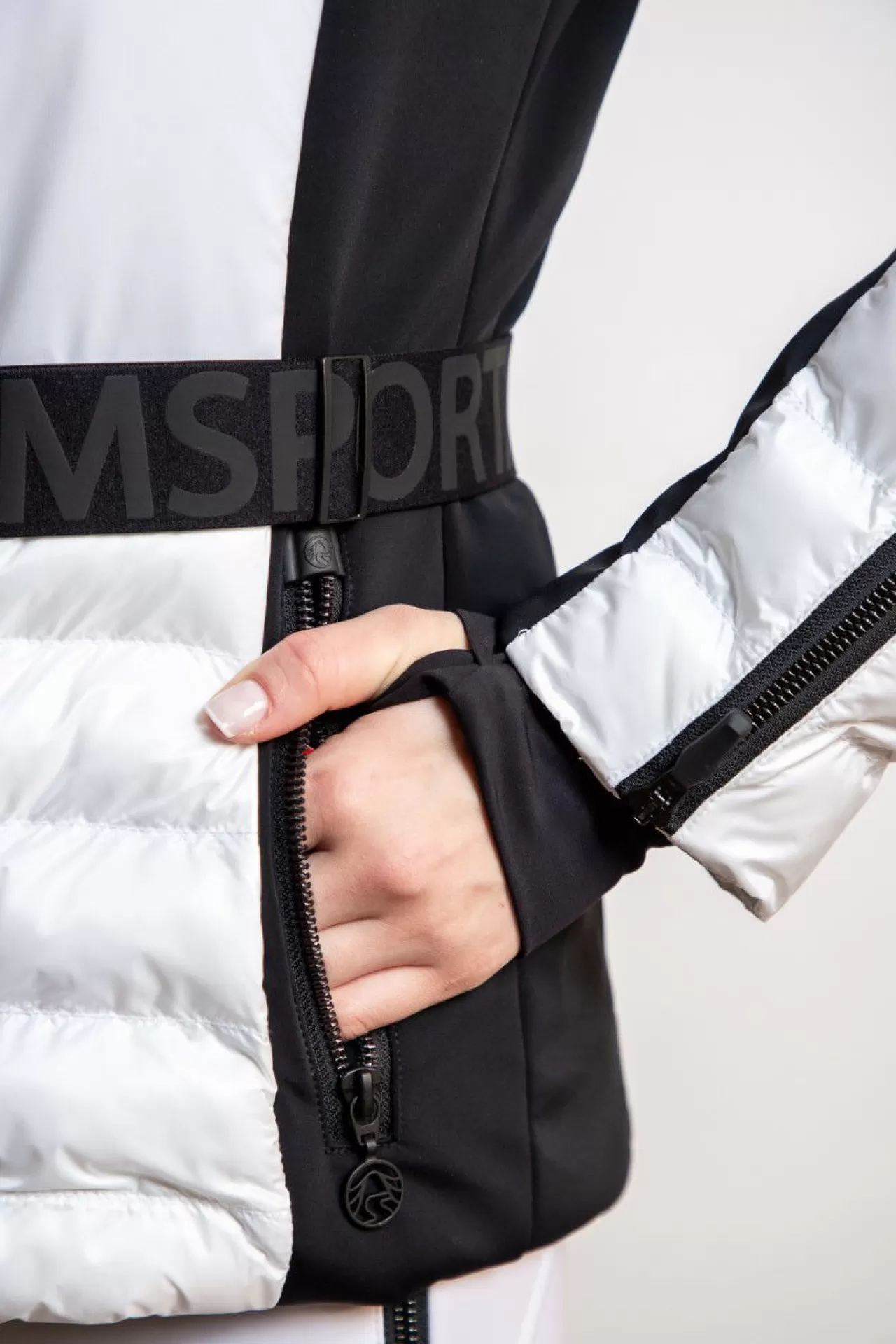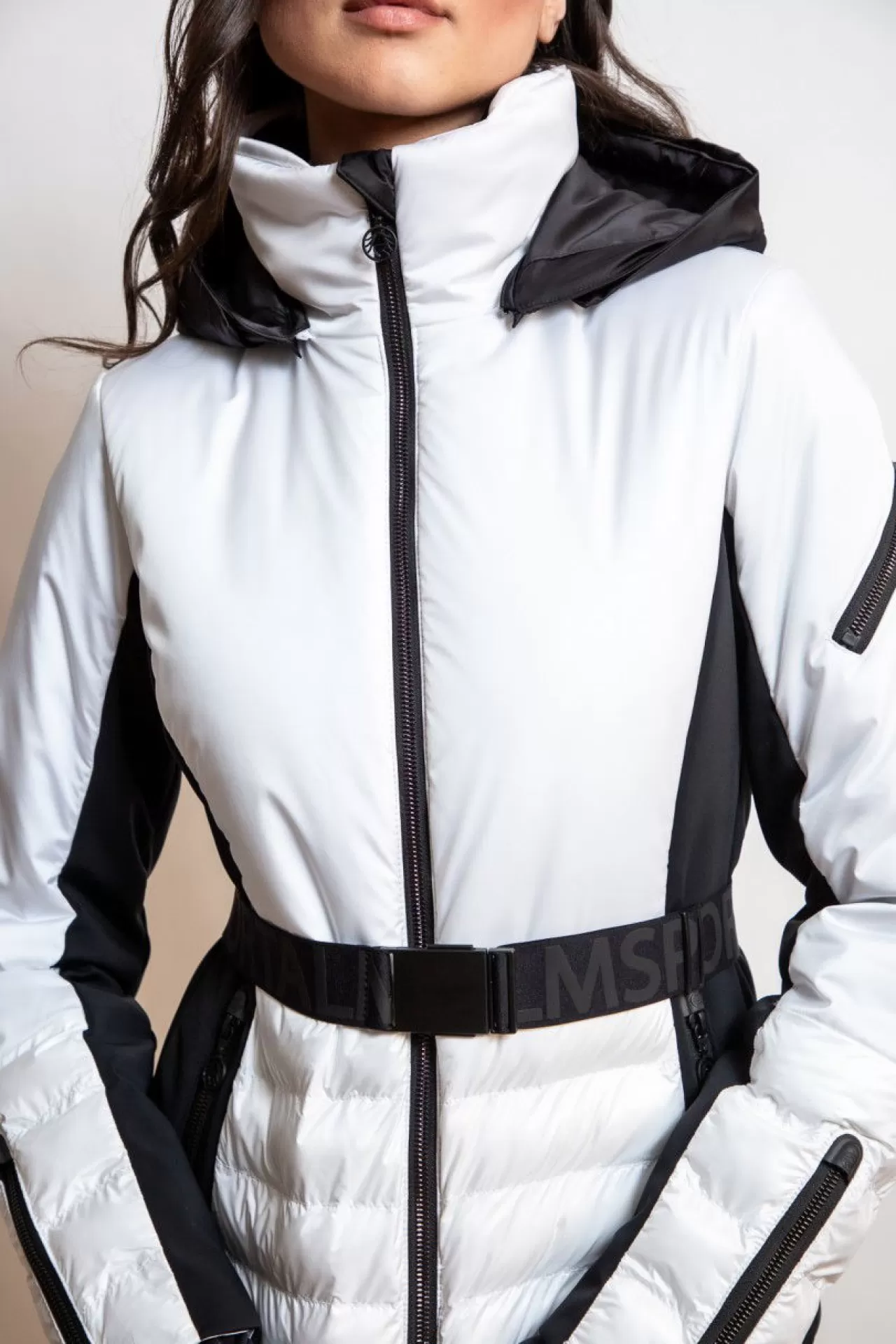 Diese taillierte Jacke mit Gürtel ist in einem edlen Colour-Block-Look gehalten. Im Vorderteil sind zwei sichtbare Reißverschlusstaschen eingearbeitet und der abnehmbare Gürtel ist mit einem erhabenen Sportalm-Silikon-Schriftzug versehen. Die Kapuze legt sich kuschelig um die Schultern und ist abzippbar. Die Ärmel schließen mit einem weichen Bündchen mit Daumenloch ab und können in der Saumweite mit einem Reißverschluss individuell verändert werden. Am linken Oberarm ist zusätzlich eine Reißverschlusstasche für die wichtigen Kleinigkeiten eingearbeitet. Die abzippbare Kapuze ist durch ein Kordelband in der Weite variierbar. Als Verschluss dient in der vorderen Mitte ein sichtbar eingenähter Zwei-Wege-Reißverschluss. Die Jacke ist komplett gefüttert und ist mit einer aufgesetzten Tasche und einer nahtverdeckten Reißverschlusstasche versehen. Am rechten Oberarm ist ein RECCO-Stein eingearbeitet.
