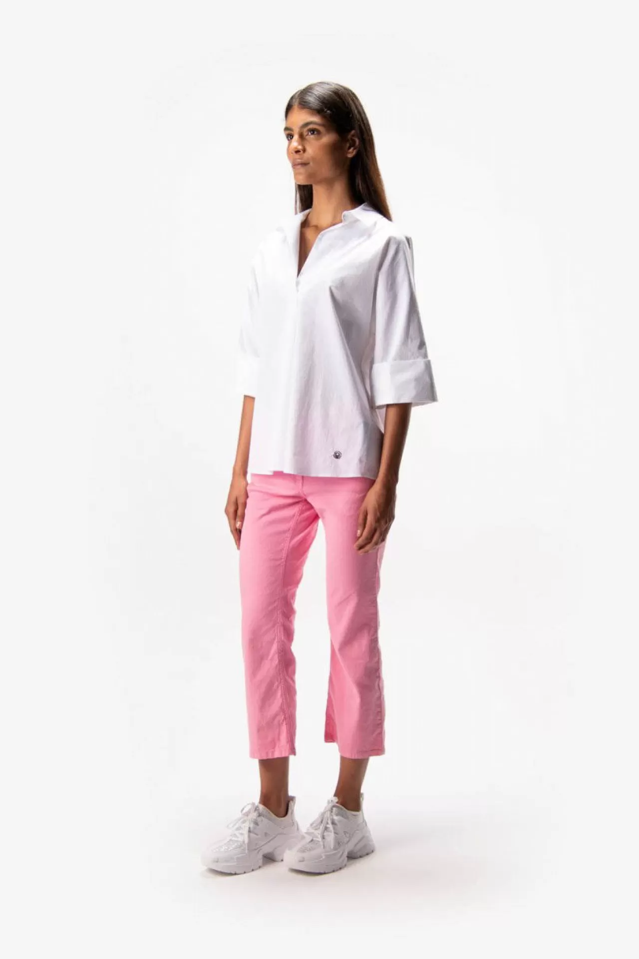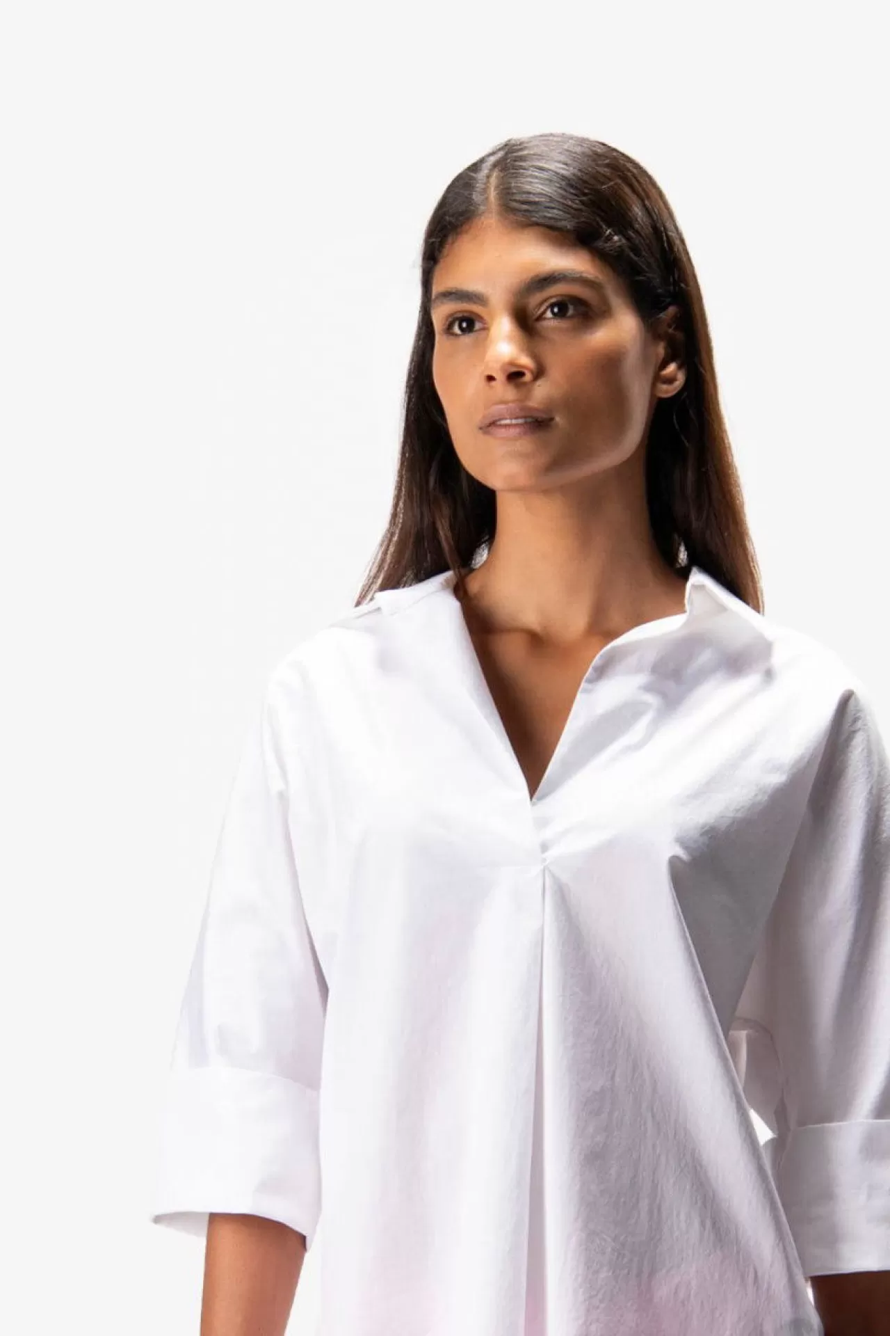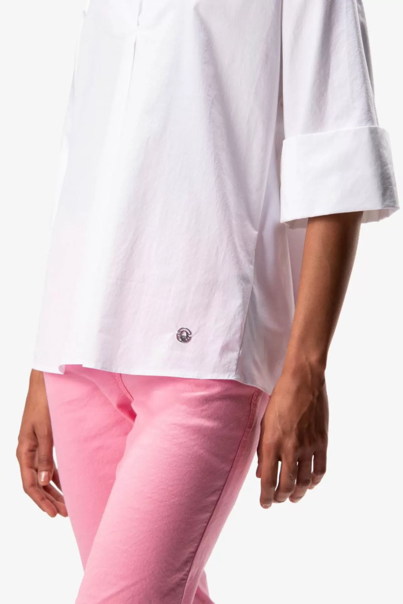 Das perfekte Kombiteil: die Schlupf-Shirtbluse mit angeschnittenen Fledermausärmeln aus einem sportlichen Materialmix. Die Vorderseite ist aus einem sommerlichen Baumwollstoff mit leichtem Crinkle-Effekt, die Rückseite aus dünnem Jerseystoff gefertigt. Kurzer Schlitz in der vorderen Mitte für leichtes Anziehen. Leicht abgerundeter Saum. Die Passform: locker und weit