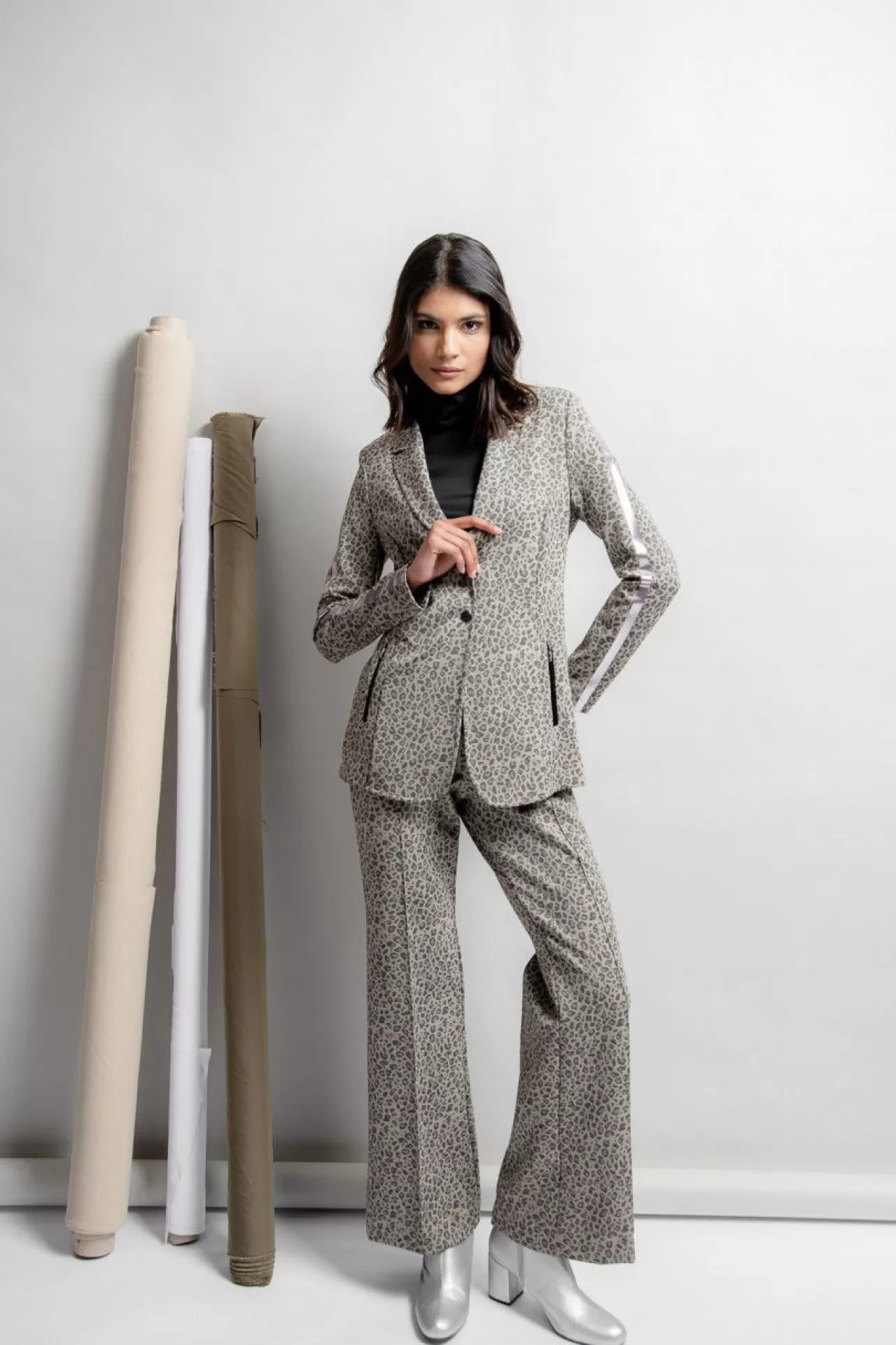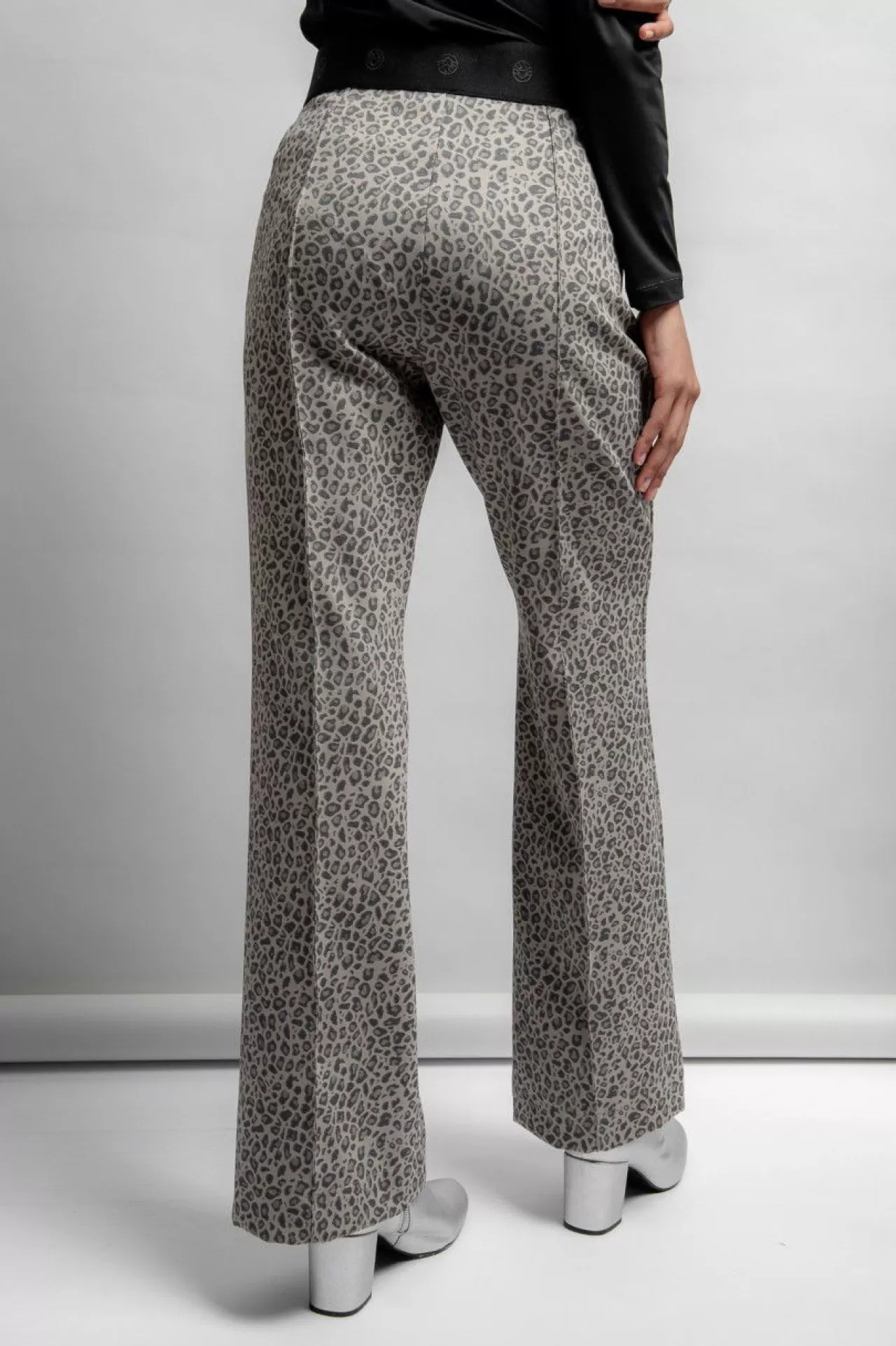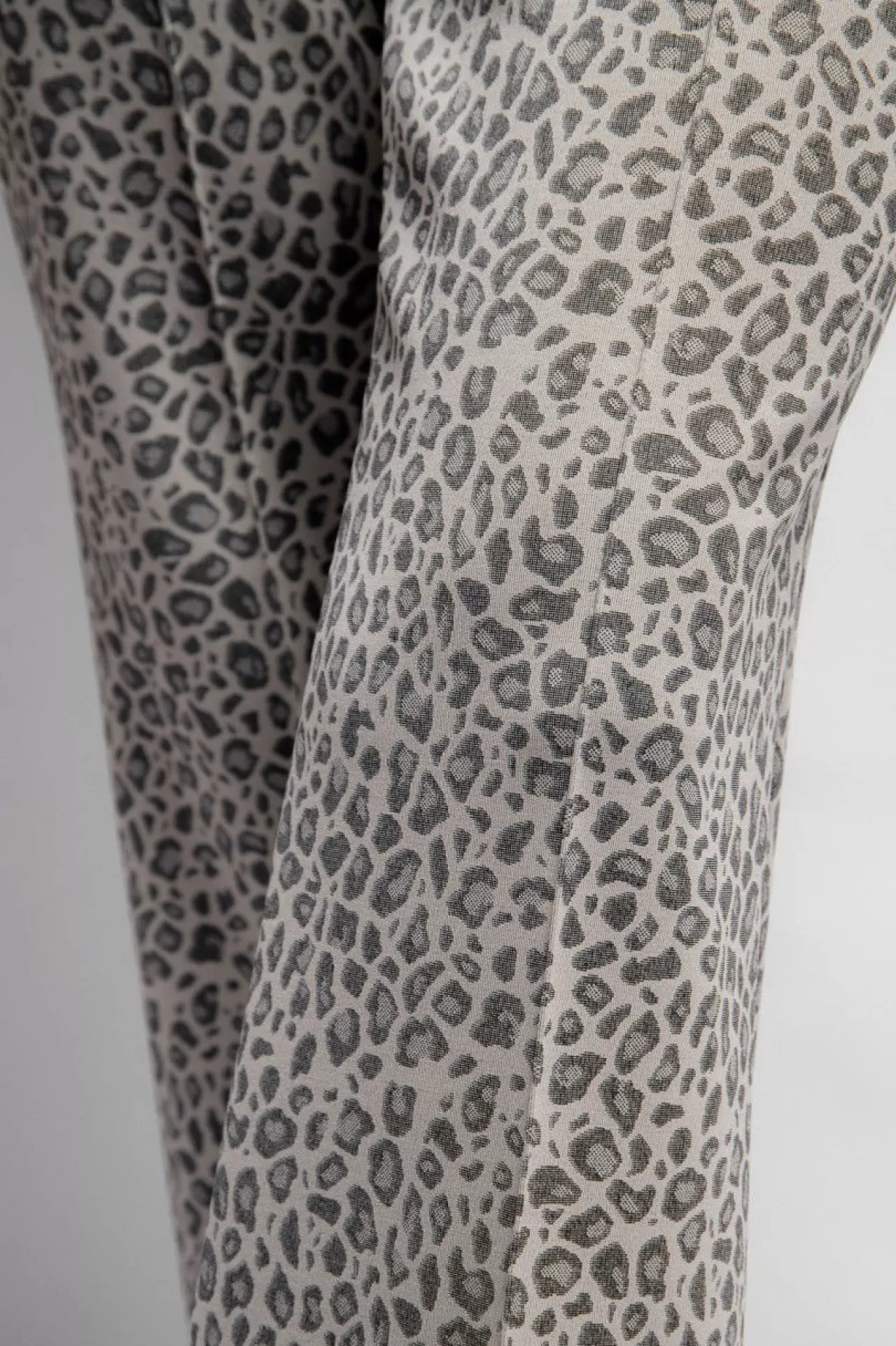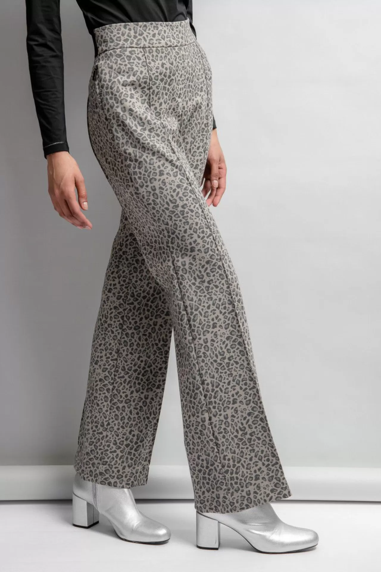 Diese modische Hose aus einer stretchigen Leoparden-Jacquard-Qualität hebt die Vorzüge Ihrer Figur hervor. Die trendige Silhouette mit dem geraden Bein mit der leicht ausgestellten Form am Saum zieht alle Blicke auf sich. In der vorderen Mitte ist eine Reißverschlussverarbeitung angedeutet und in der Seitennaht sind zwei nahtverdeckte Reißverschlusstaschen eingearbeitet. Für einen hohen Tragekomfort sorgt der weiche Gummibund mit Logoverzierung im Rückenteil in der Taille. Eine Biesennaht ziert die Hosenbeine in der vorderen und hinteren Mitte.