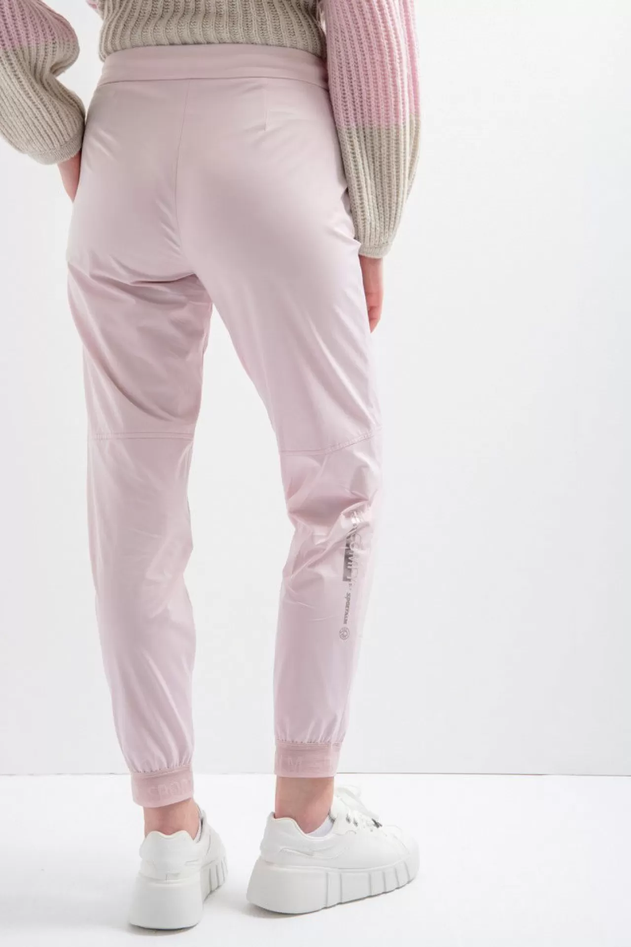 Garantiert entspannend ist der Tragekomfort dieser modisch sportiven Jogginghose aus einer edlen, leicht schimmernden Stretch-Qualität. Die Techno-Stretch-Ware garantiert einen hohen Tragekomfort und verbindet die Sportlichkeit mit Eleganz. Der Bund ist mit einem blinden Bundhaken und einer klassischen Reißverschluss-Verarbeitung versehen. Die Seitennaht ist mit einer Eingriffstasche versehen und auf Kniehöhe sind Patten fixiert, die eine Pattentasche ohne Funktion darstellen. Die Hosenbeine schließen mit einem logoverzierten Gummibund ab. In der Hinterhose ist auf der rechten Wade ein toniger Sportalm-Logo-Transfer-Druck platziert.