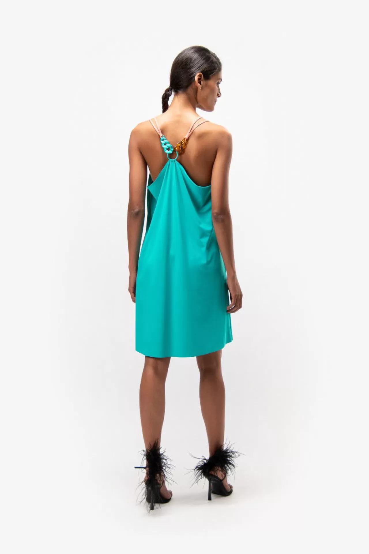 Sportiv & edel: das ärmellose Kleid mit Rundhalsausschnitt aus einer leichten, sportiven Jersey-Qualität. Raffiniertes Trägerdetail im Rücken aus lackierten Hornelementen mit verspielten Kordeln verziert. Used-Look durch die teilweise Opened-Edge-Verarbeitung der Kanten. Der Fit: Figur schmeichelnd. Rückenlänge: Gr. 36 90,8 cm