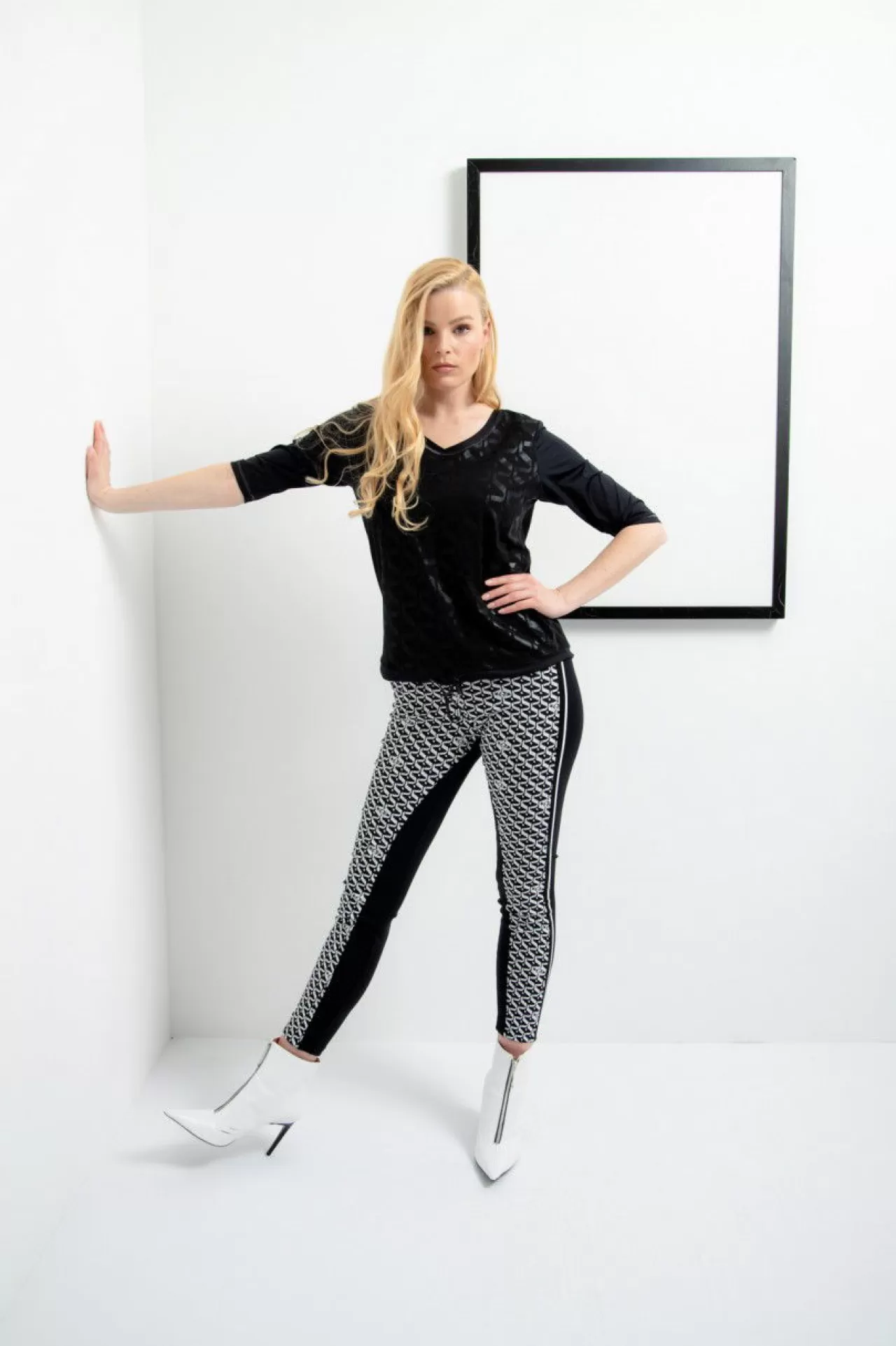 Die körpernahte Passform und die exklusive Materialauswahl machen diese Leggings zu einem Must-Have-Piece der Saison. Auffallend ist die exklusive Jacquard-Qualität mit dem geometrischen Muster und den integrierten Sportalm-Logos im Vorderteil. Die hochwertige Scuba-Ware in der Hinterhose und in der Seite sorgt für einen hohen Tragekomfort. Das kontrastfarbige Tape-Band auf dem einfarbigen Seitenteil lässt die Figur schmäler und die Beine länger erscheinen. Der breite Bund in der Taille aus der weichen Scuba-Qualität engt in der Taille nicht ein und durch den sichtbar eingenähten Reißverschluss in der vorderen Mitte ist ein bequemes Anziehen garantiert.