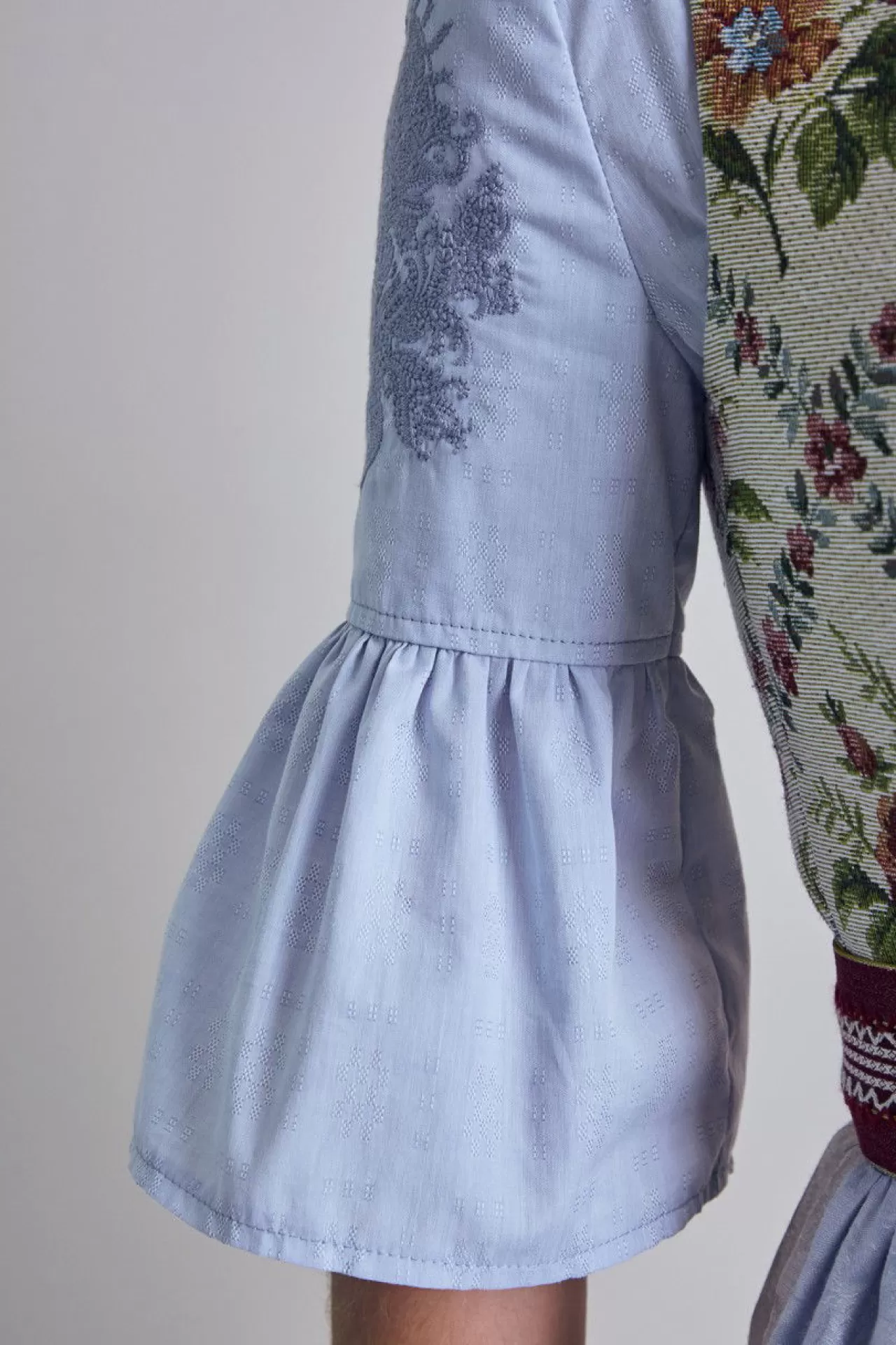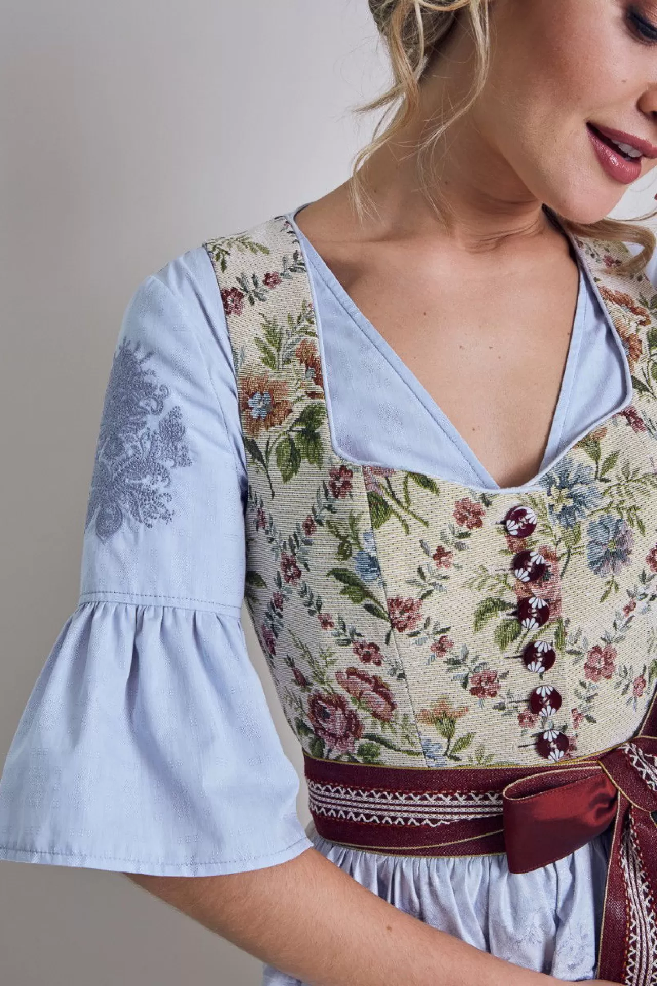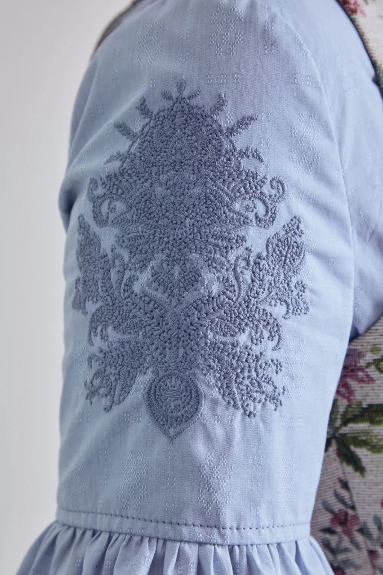 Sportalm präsentiert hier eine ganz besondere Dirndlbluse, in die man sich einfach verlieben muss. Die weiche Baumwoll-Qualität fühlt sich sehr angenehm auf der Haut an und garantiert einen hohen Tragekomfort. Durch den femininen V-Ausschnitt ist sie die perfekte Kombination mit jedem Dirndl. Der Hingucker sind die extravaganten Ärmel. Am schmalen Oberarm ist eine hochwertige Kreuz-Stickerei platziert und darunter schließt der Ärmel durch einen geschmackvollen Volant ab. Komplettiert wird der märchenhafte Look durch die schimmernden Perlmuttknöpfe in der vorderen Mitte. Für einen perfekten Sitz unter der Brust sorgt ein weicher Gummi.