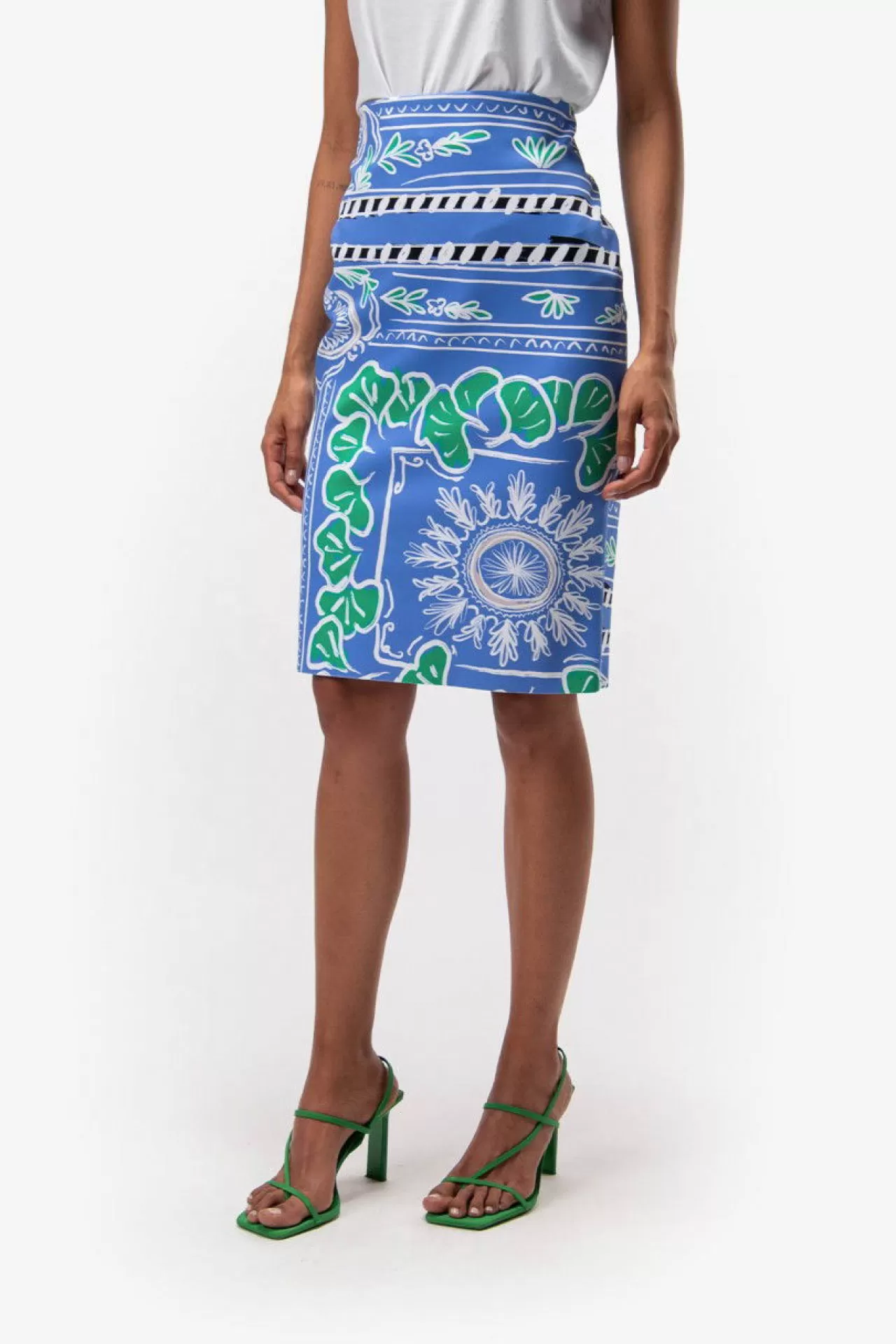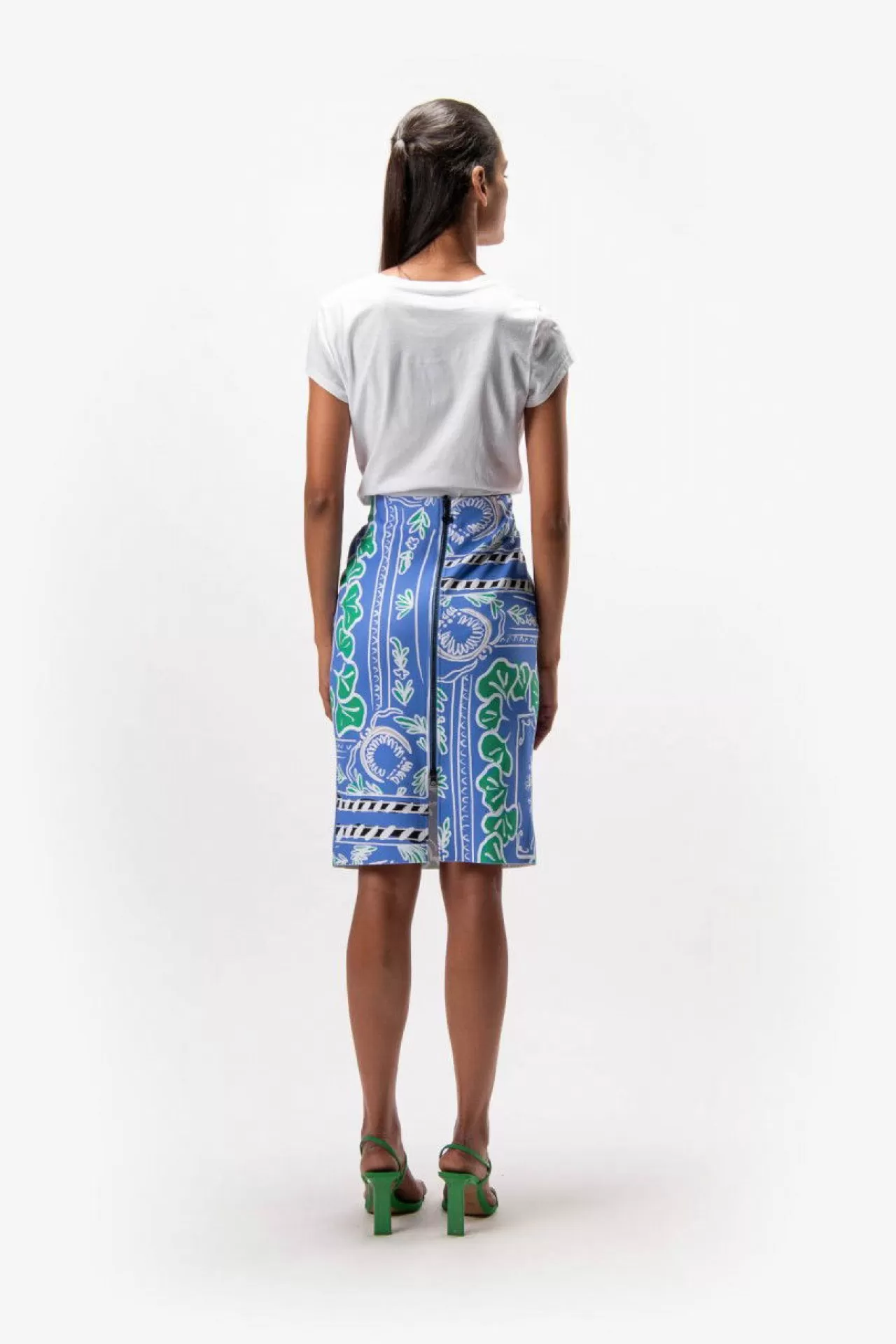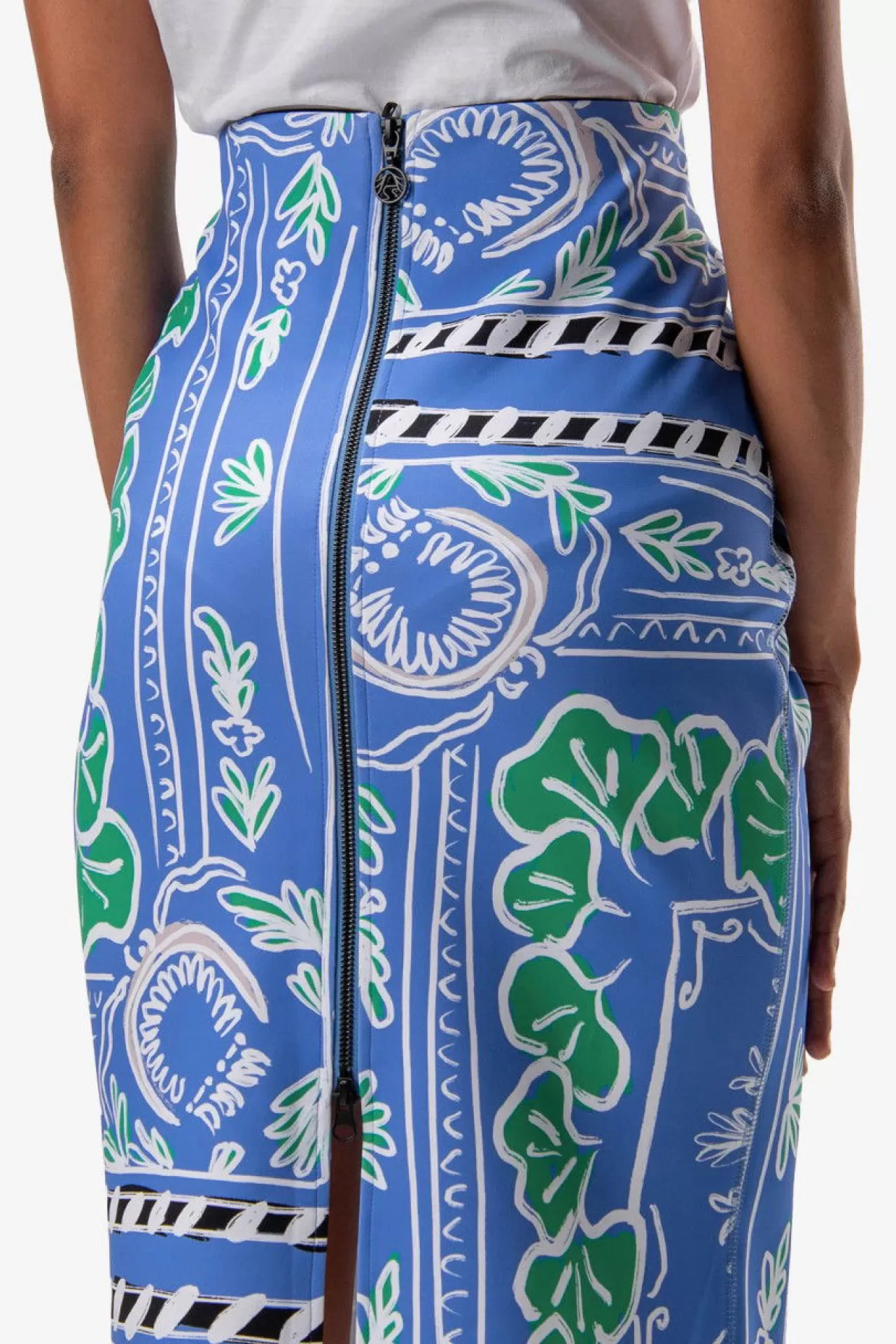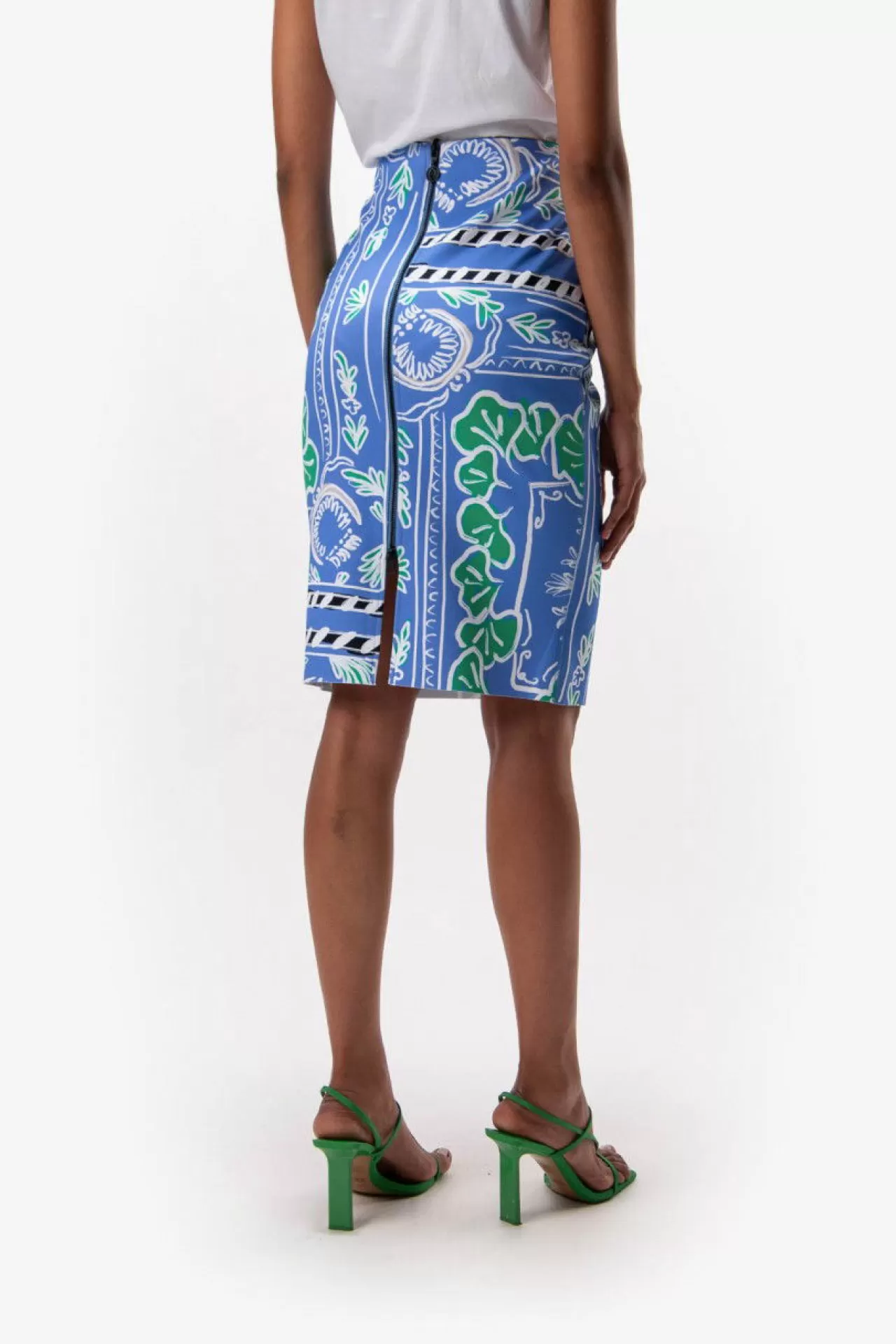 Modisch & feminin: der Pencilskirt mit hochgeschnittenem Bund aus einer elastischen Scuba-Qualität. Durchgängiger Zwei-Wege-Reißverschluss in der vorderen Mitte mit Schlitz am Saum. Auffallend ist der exklusive Allover-Print. Der Fit: schmal und feminin