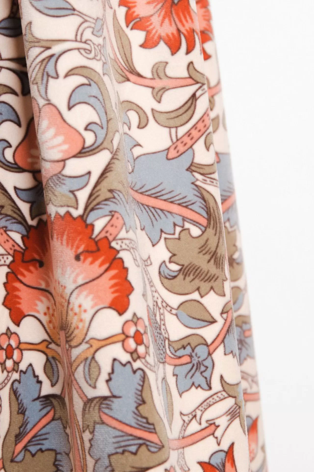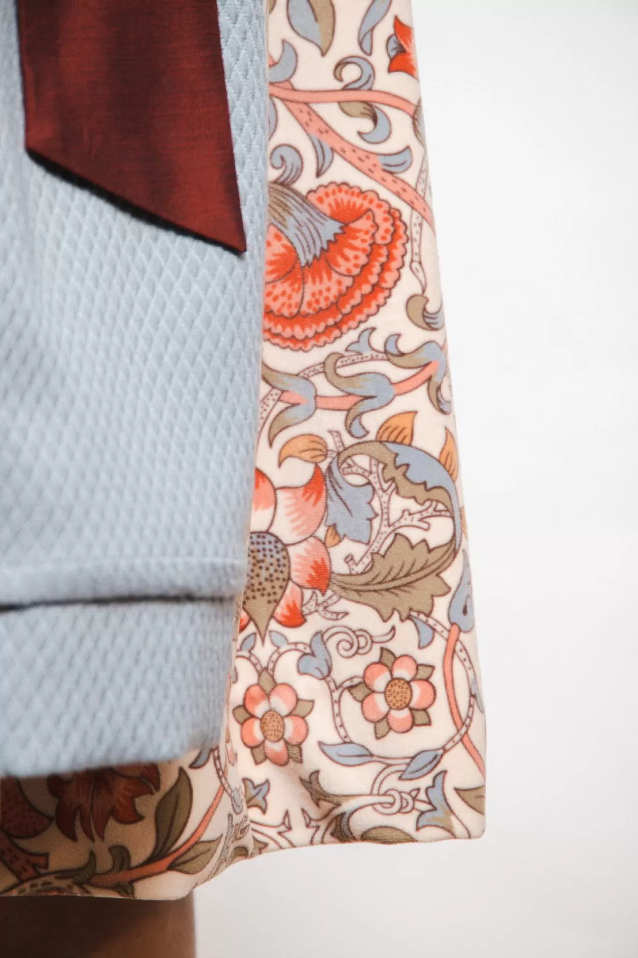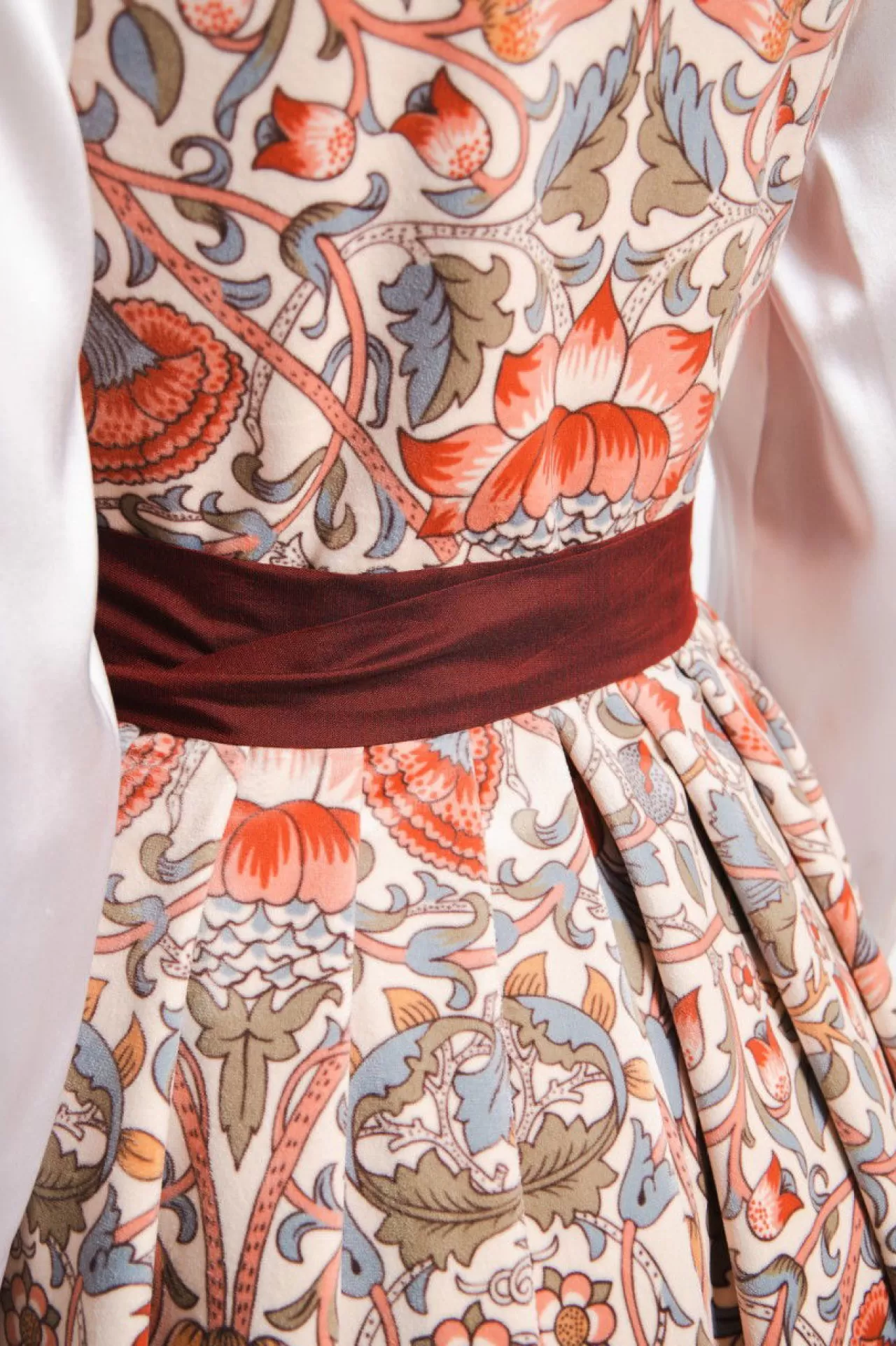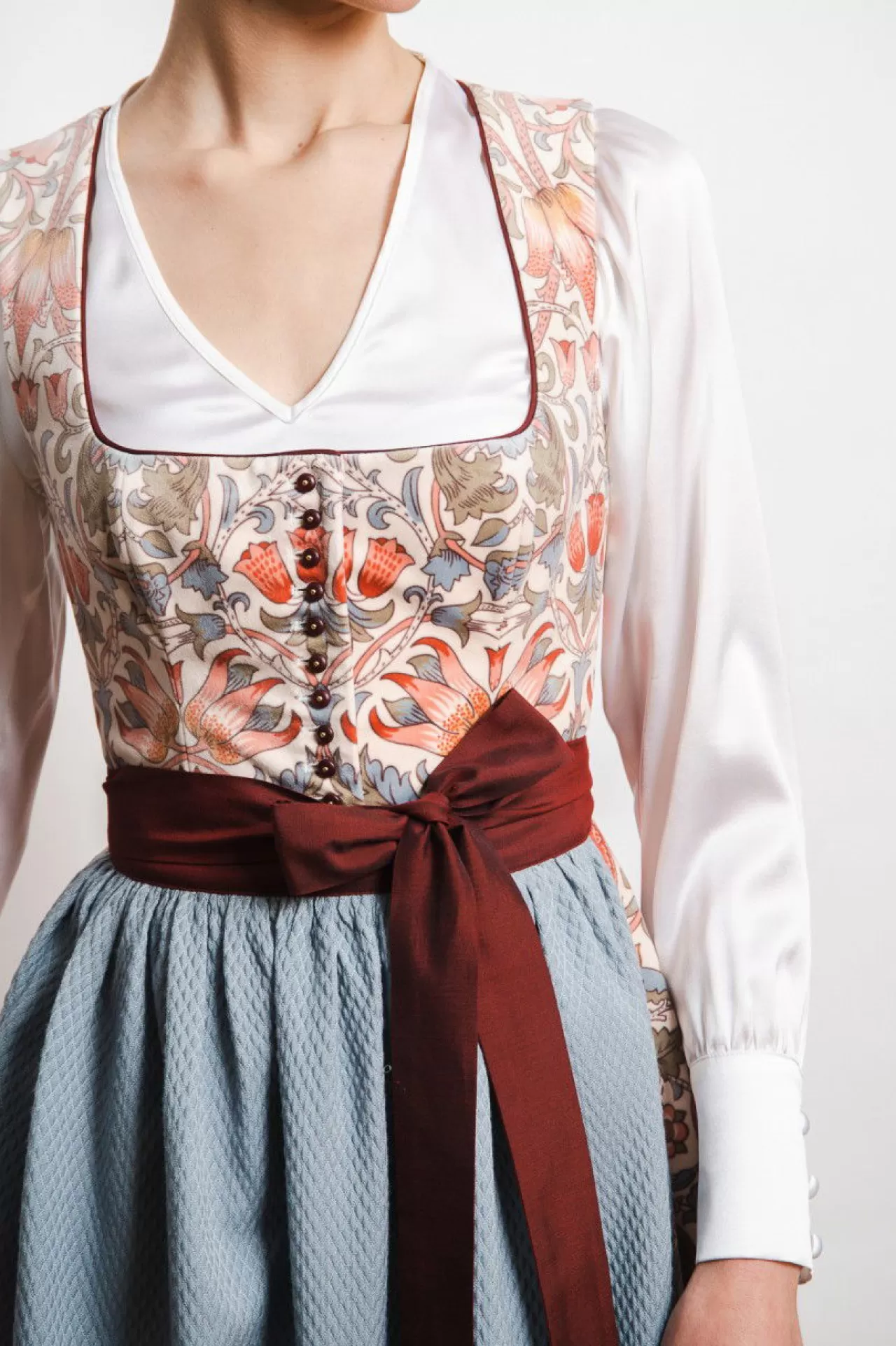 Das Allover-Samtdirndl mit nostalgischem Muster ist perfekt für jeden Anlass. Der Faltenrock umspielt die Figur durch den schwereren Samt besonders schön und wirkt gleichzeitig sehr modern in der Midi Länge. Die Schürze ist dreidimensional aus einem super weichen Jacquard gewebt. Das Schürzenband ist aus einem Seidenmix und setzt den perfekten Farbkontrast, der sich auch in der Paspel am Ausschnitt und den Knöpfen wieder findet. Der Fit: Oberteil körpernah.