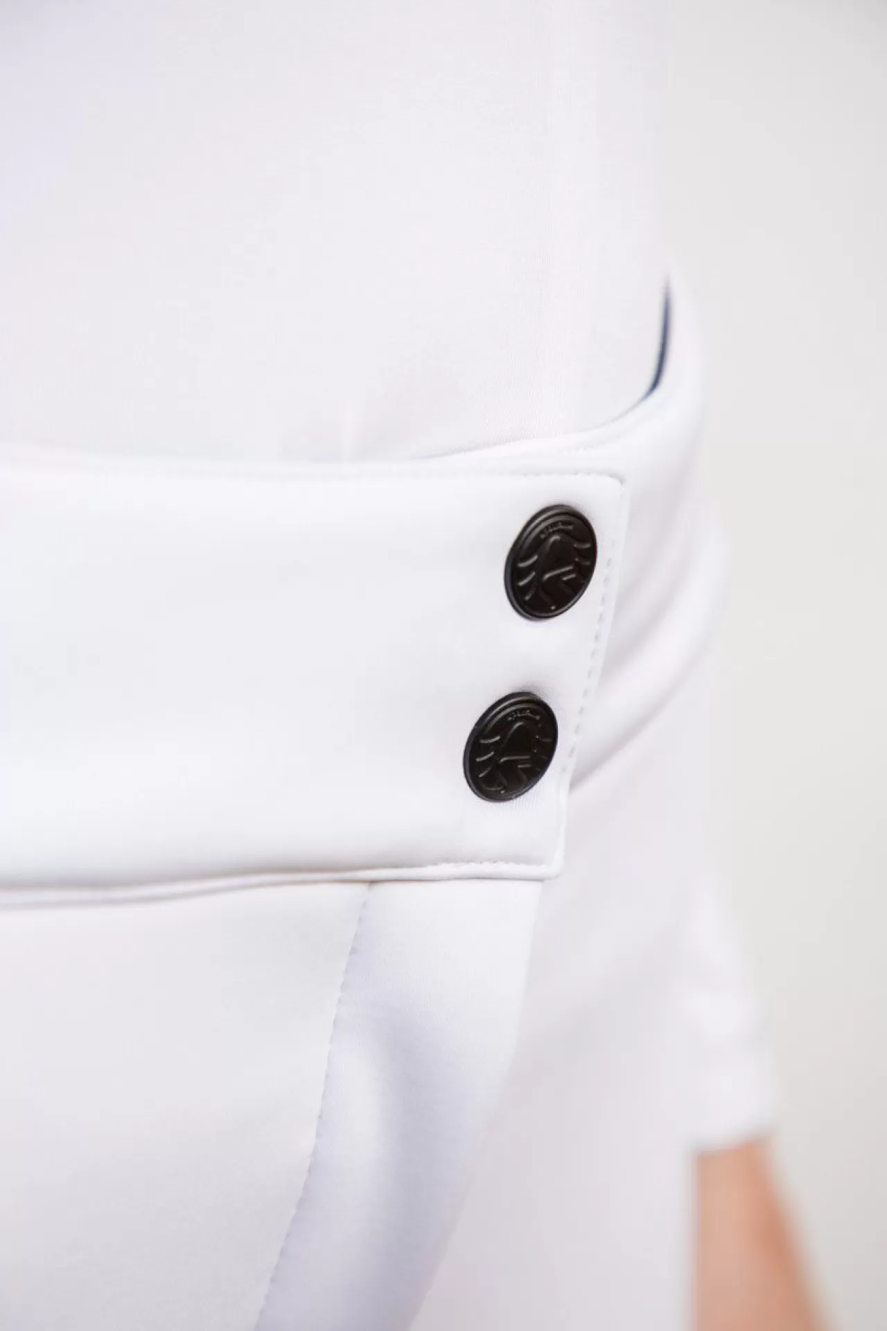 Mit dieser figurbetonten Steghose mit dem hochgeschnittenen Bund in der hinteren Mitte machen Sie immer und überall eine gute Figur. In der Vorderhose sind zwei Reißverschluss eingearbeitet, die Platz für die wichtigen Kleinigkeiten bieten. Der bequeme Bund in der Taille ist in der hinteren Mitte hochgeschnittenen und wärmt dadurch bei jeder Gelegenheit. Für ein einfaches Anziehen sorgt der Reißverschluss in der vorderen Mitte und die Bundhaken mit dem Sportalm-Logo im Bund. Durch den Saum am Steg ist die Hose für verschiedenen Beinlängen geeignet. Die Hose ist ungefüttert.
