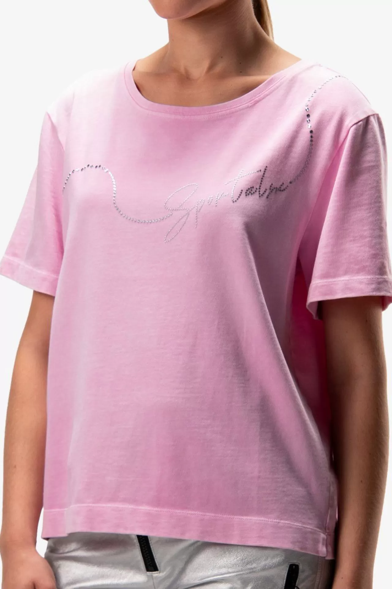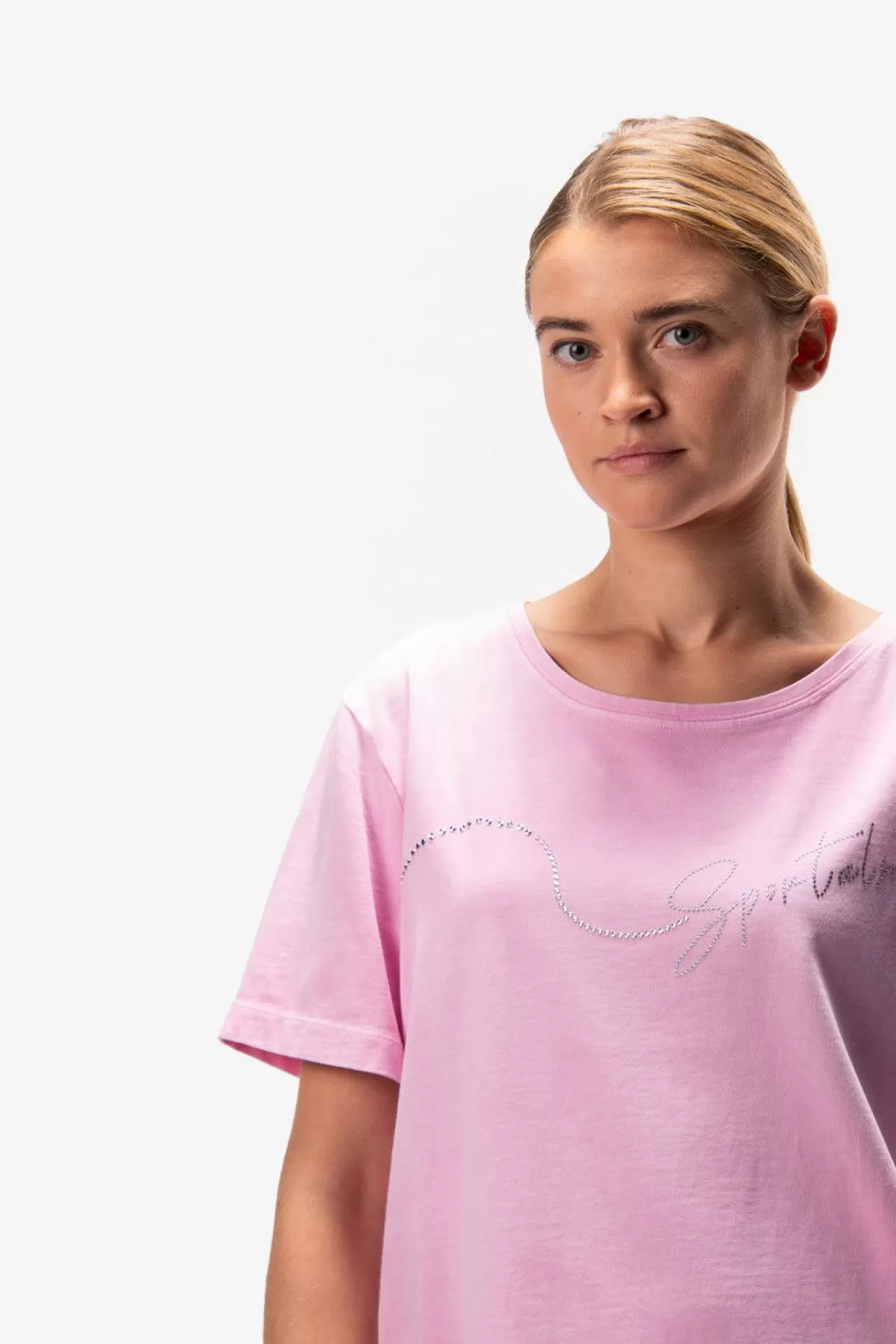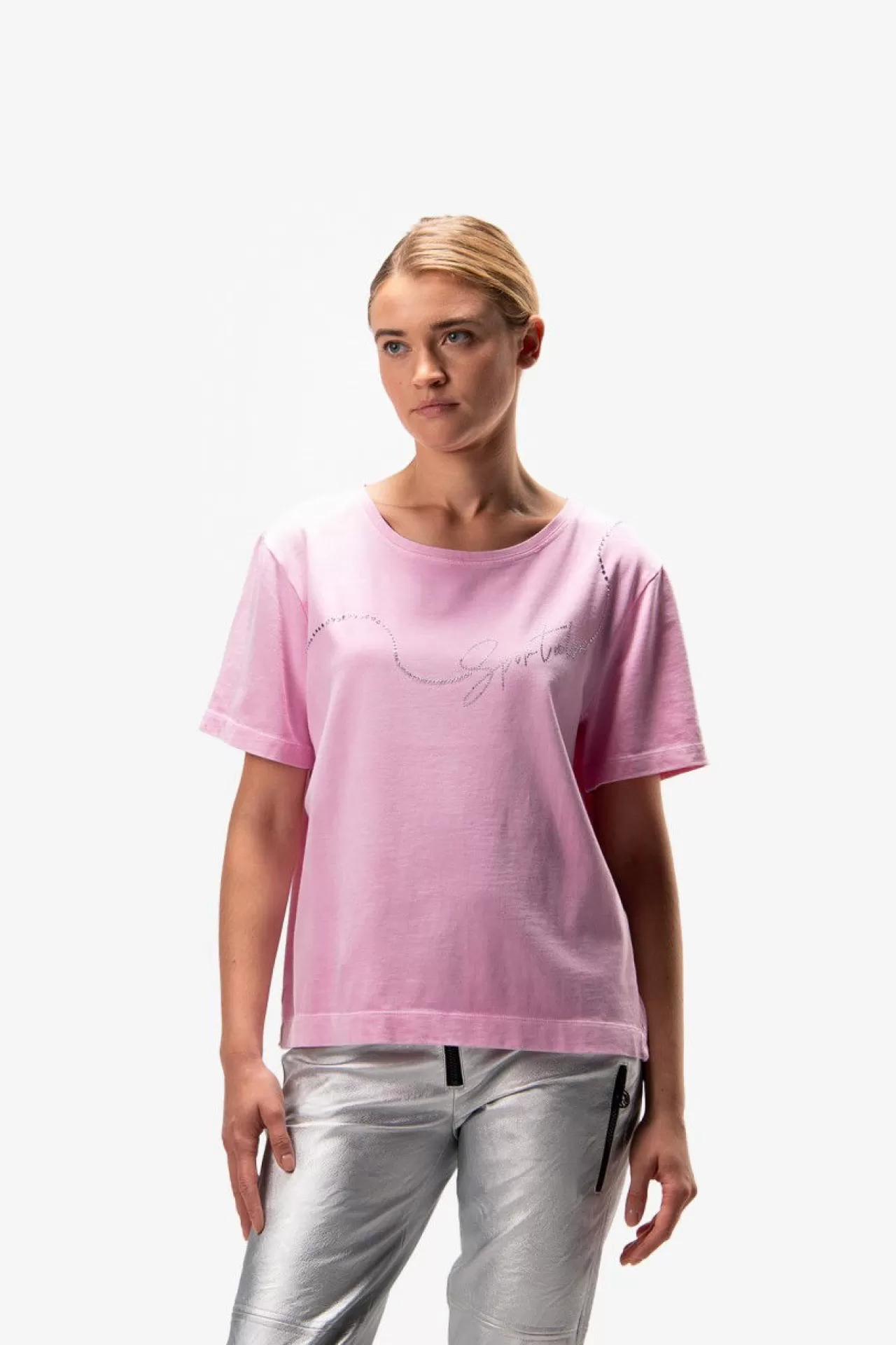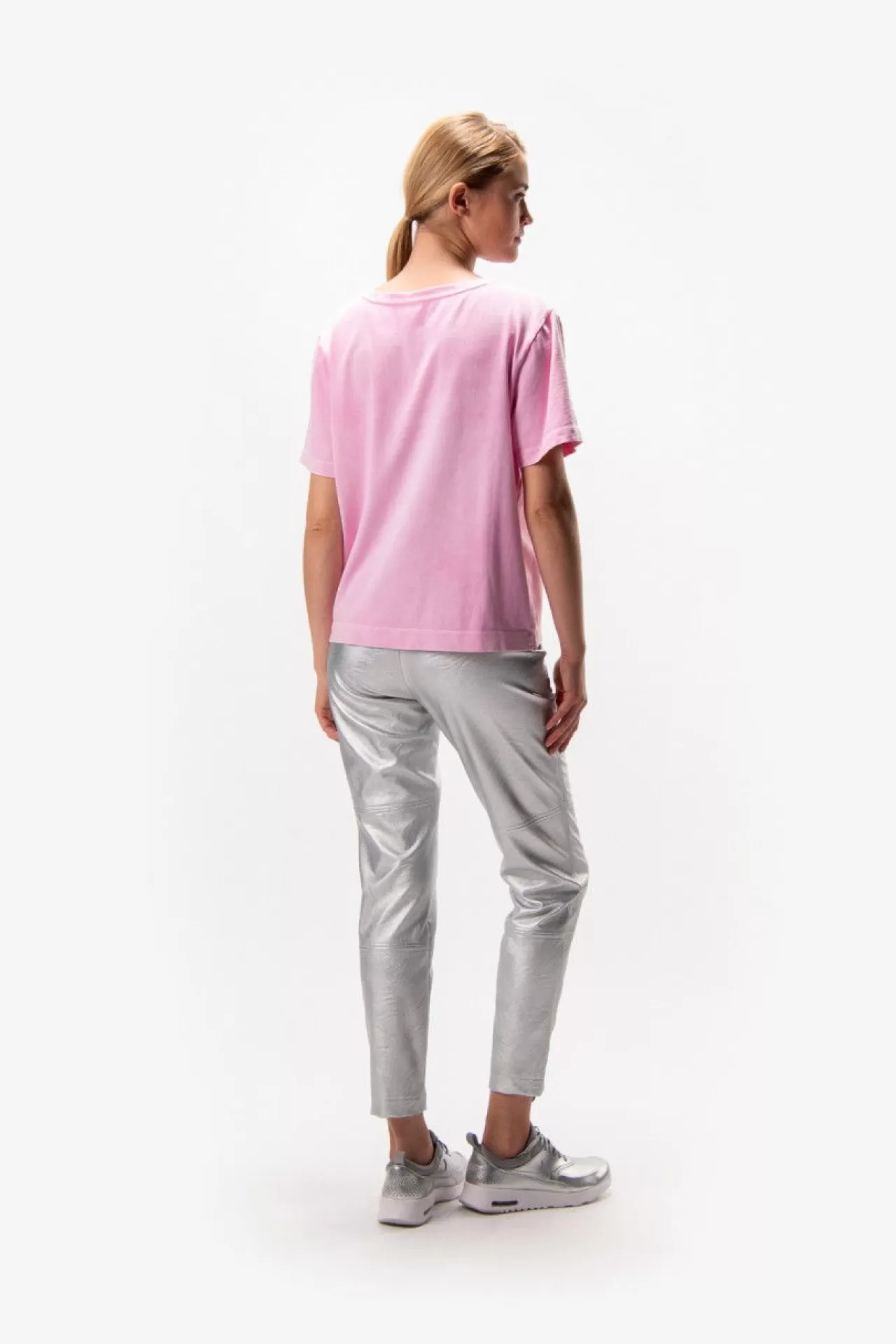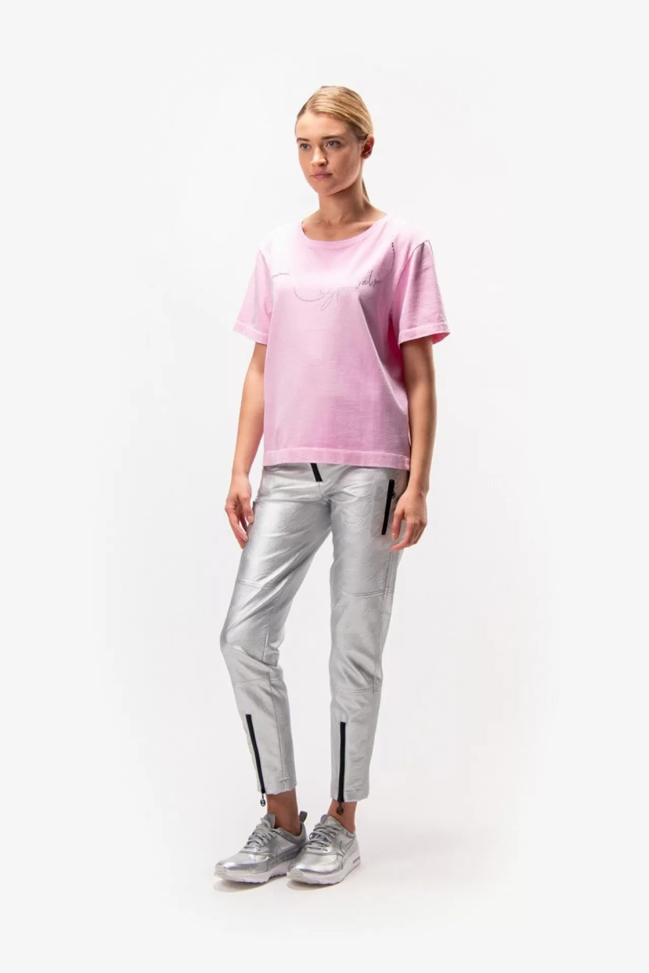 Darf auf keinen Fall fehlen: Das Kurzarm-Shirt aus einer hochwertigen Bauwoll-Qualität mit den kurzen Ärmeln. Durch das Dye-Wash-Verfahren wird jedes Shirt ein Unikat mit einem dekorativem Wording-Motiv im Vorderteil mit einer raffinierten Plättchen-Verarbeitung in Diamaten-Optik. Der Fit: gerade und lässig