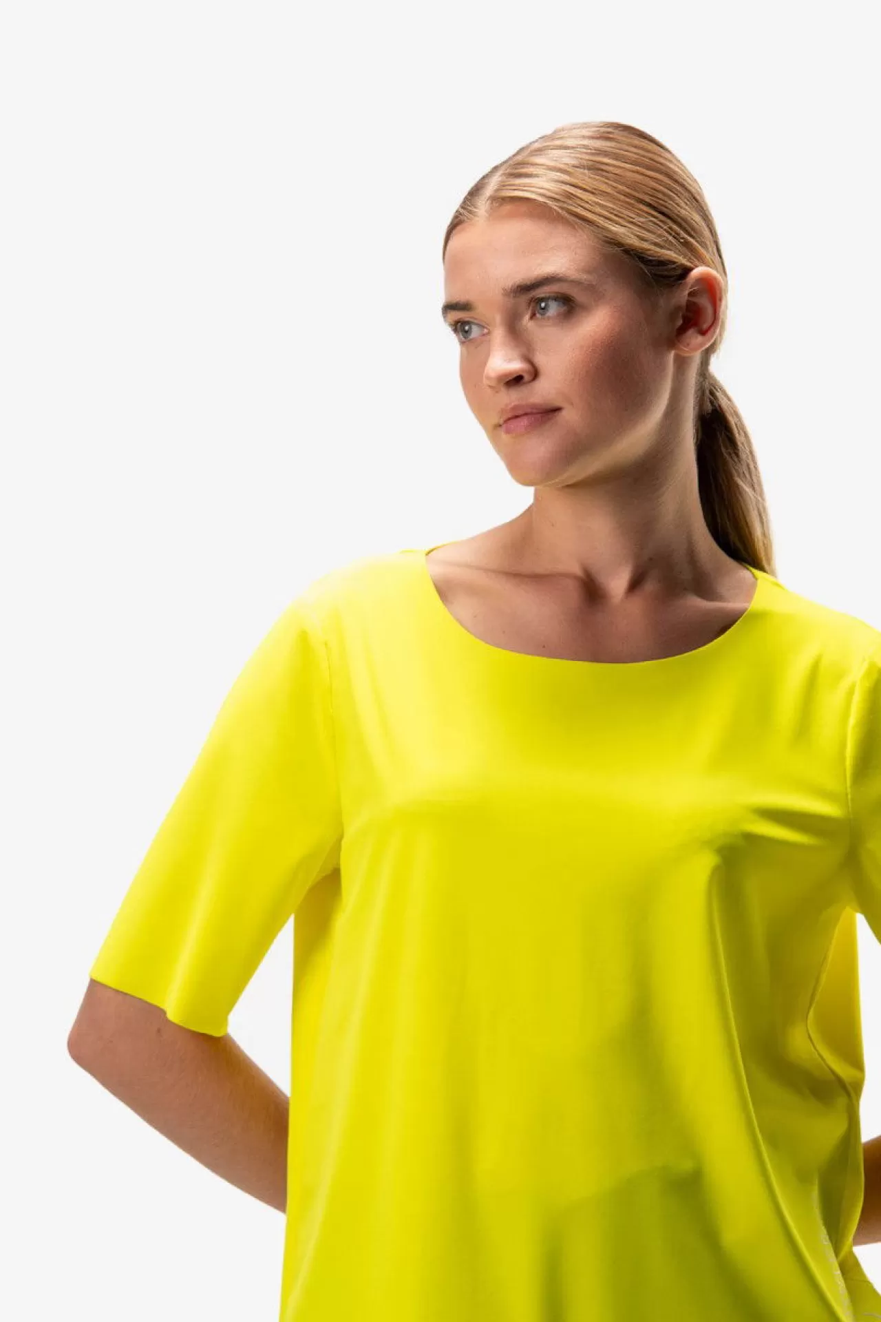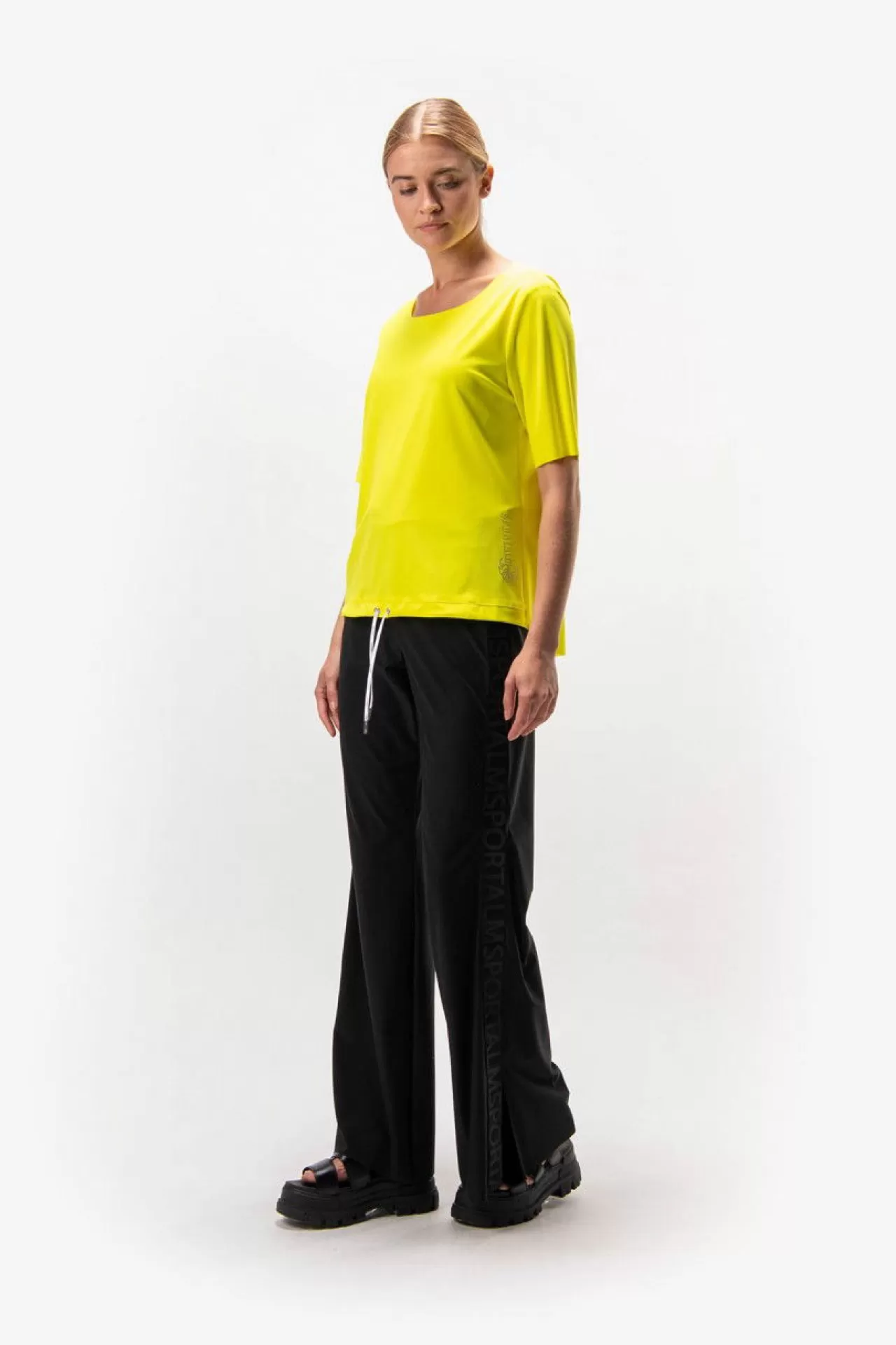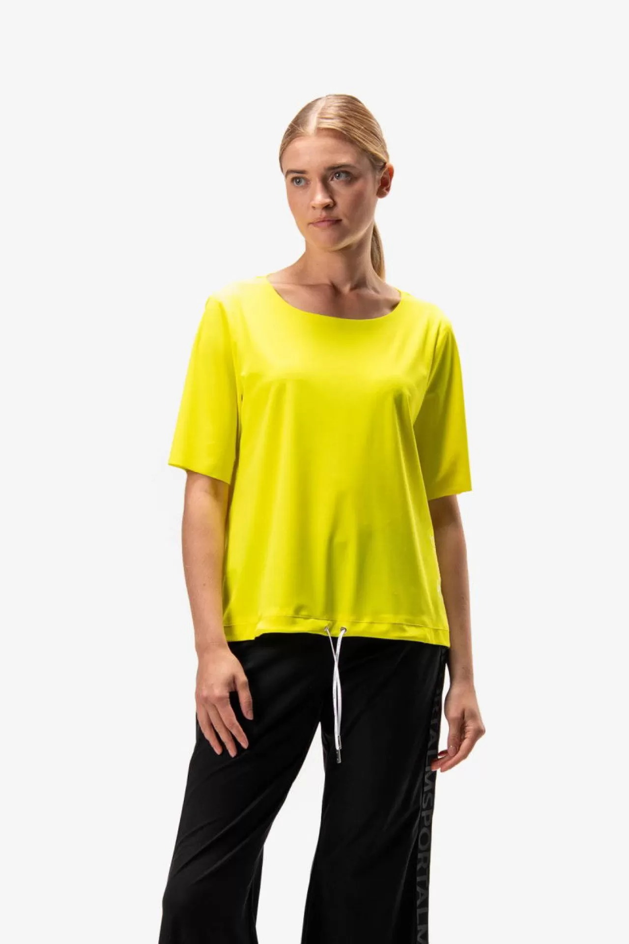 Weniger ist mehr – gibt es hier in Perfektion. Das Shirt besticht durch die schlichte Schnittführung und den hohen Tragekomforts der hochwertigen Jersey-Qualität. Die Raffung im Vorderteil am Saum ist durch eine Kordel individuell regulierbar. Den trendigen Used-Look erhält das Shirt durch die Raw-Edge-Verarbeitung am Halsausschnitt vorne, den Ärmelsäumen und dem Saum im Rückenteil. Der Saum ist rund geschnitten und im Rückenteil länger. Im Vorderteil ist auf der linken Seite am Saum ein exklusiver Transfer-Druck platziert.