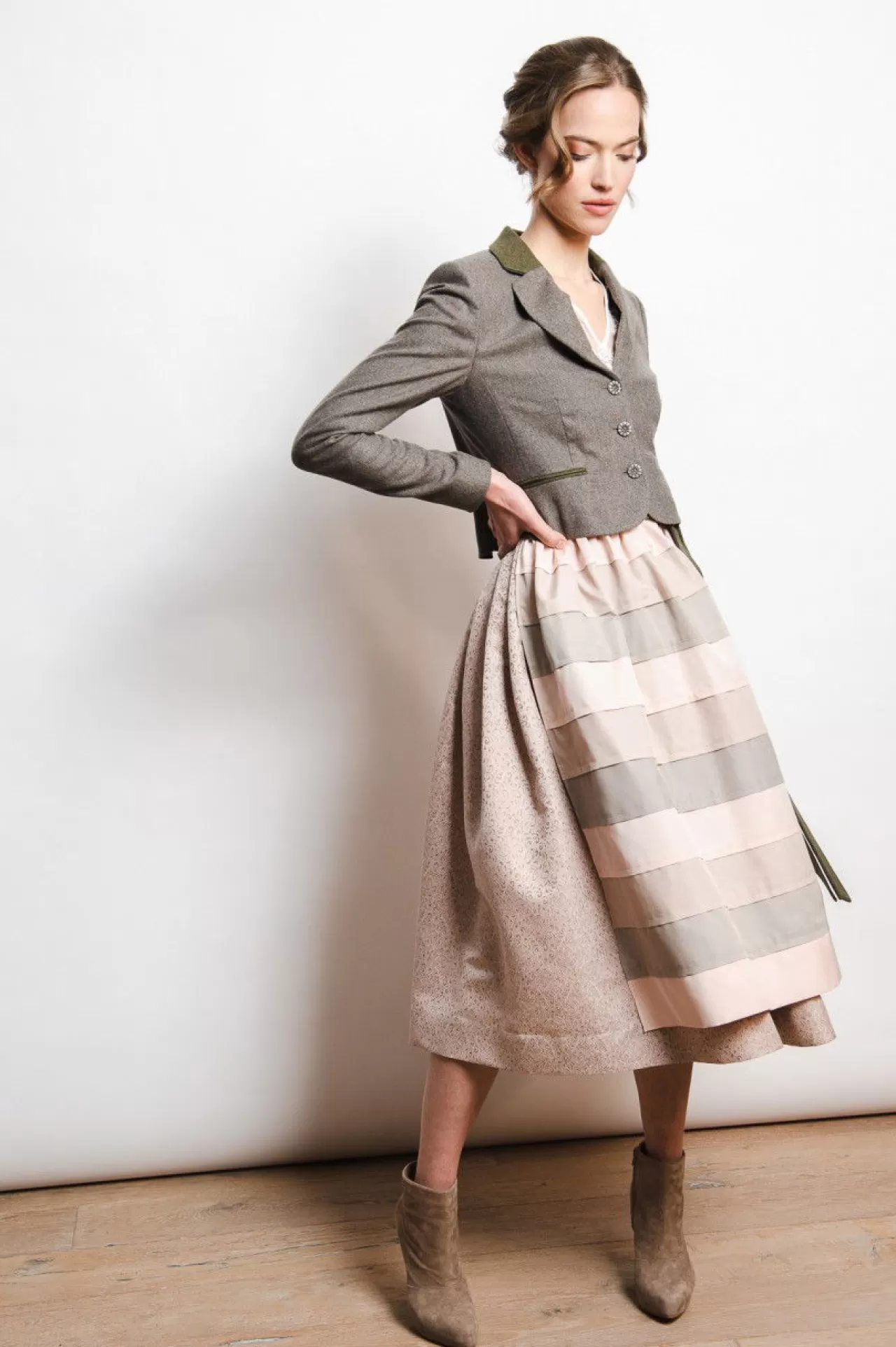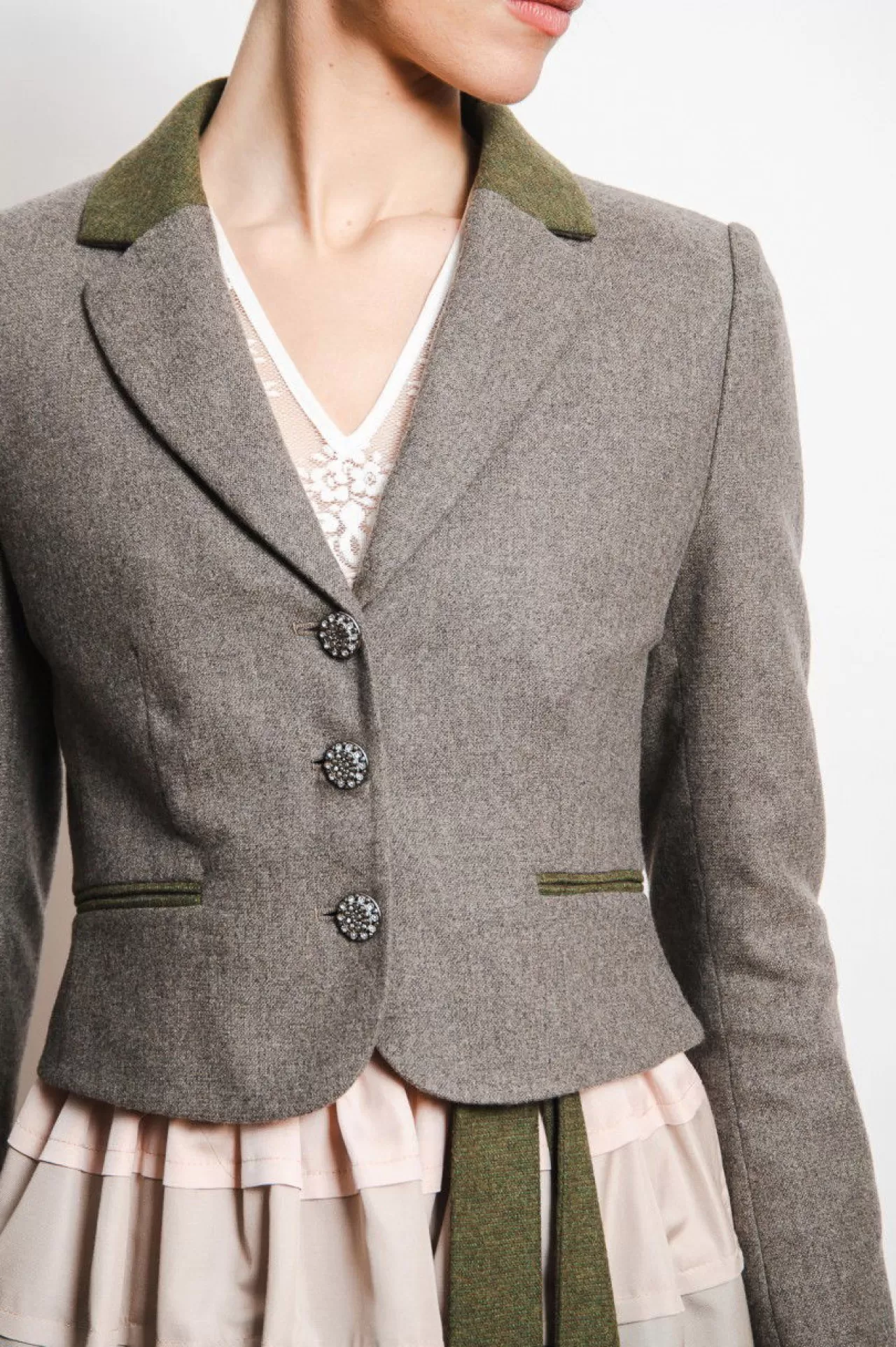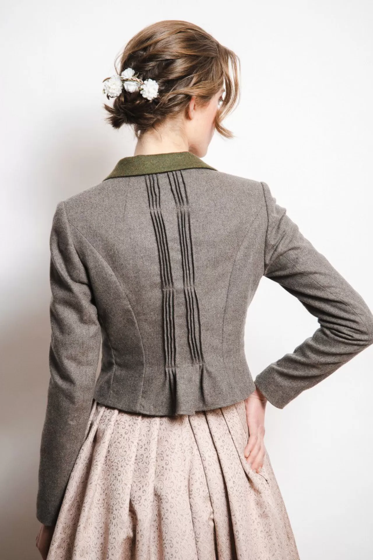 Für jeden Anlass perfekt gekleidet ist man mit dieser Jacke mit Reverskragen aus einer hochwertigen Loden-Stretch-Qualität. Besondere Details sind edle Absteppungen im Rückenteil, die am Saum in Falten enden, der Kragen und die Paspeltaschen im Vorderteil aus feiner Woll-Qualität. Schulterpolster sorgen für einen perfekten Sitz. Die Jacke ist teilweise gefüttert. Der Fit: tailliert, feminin