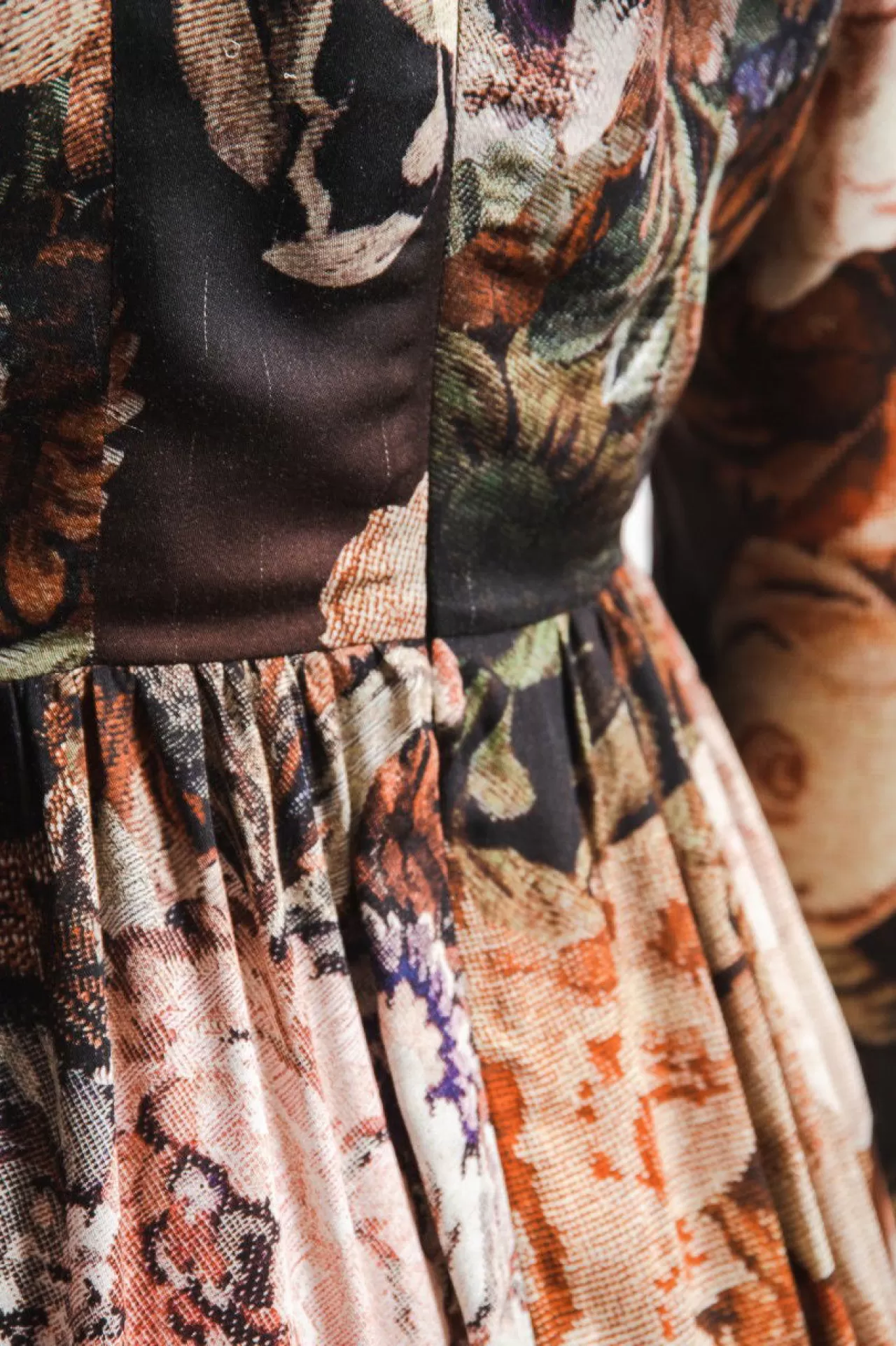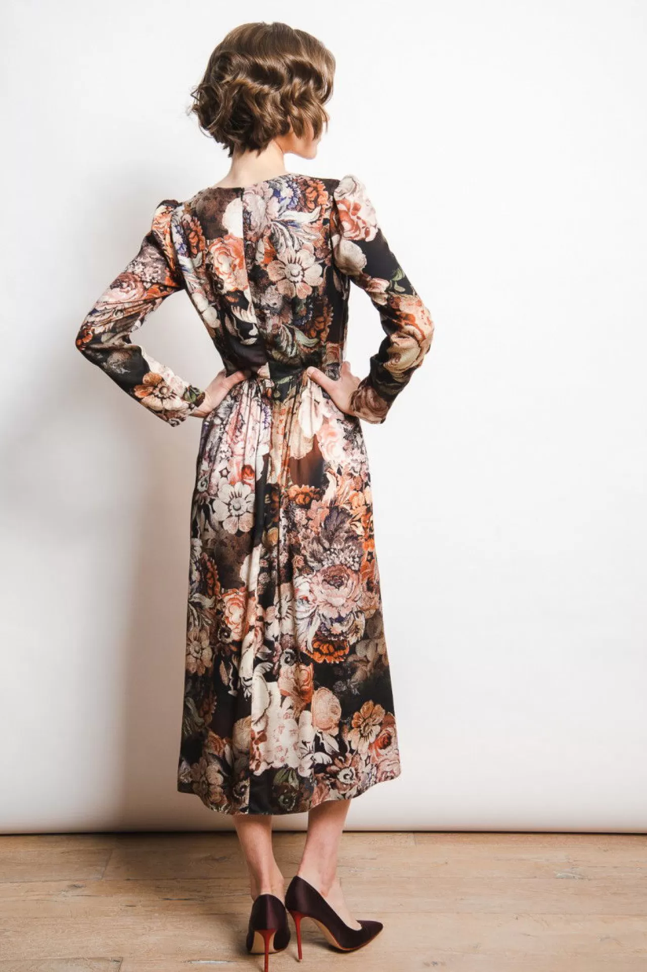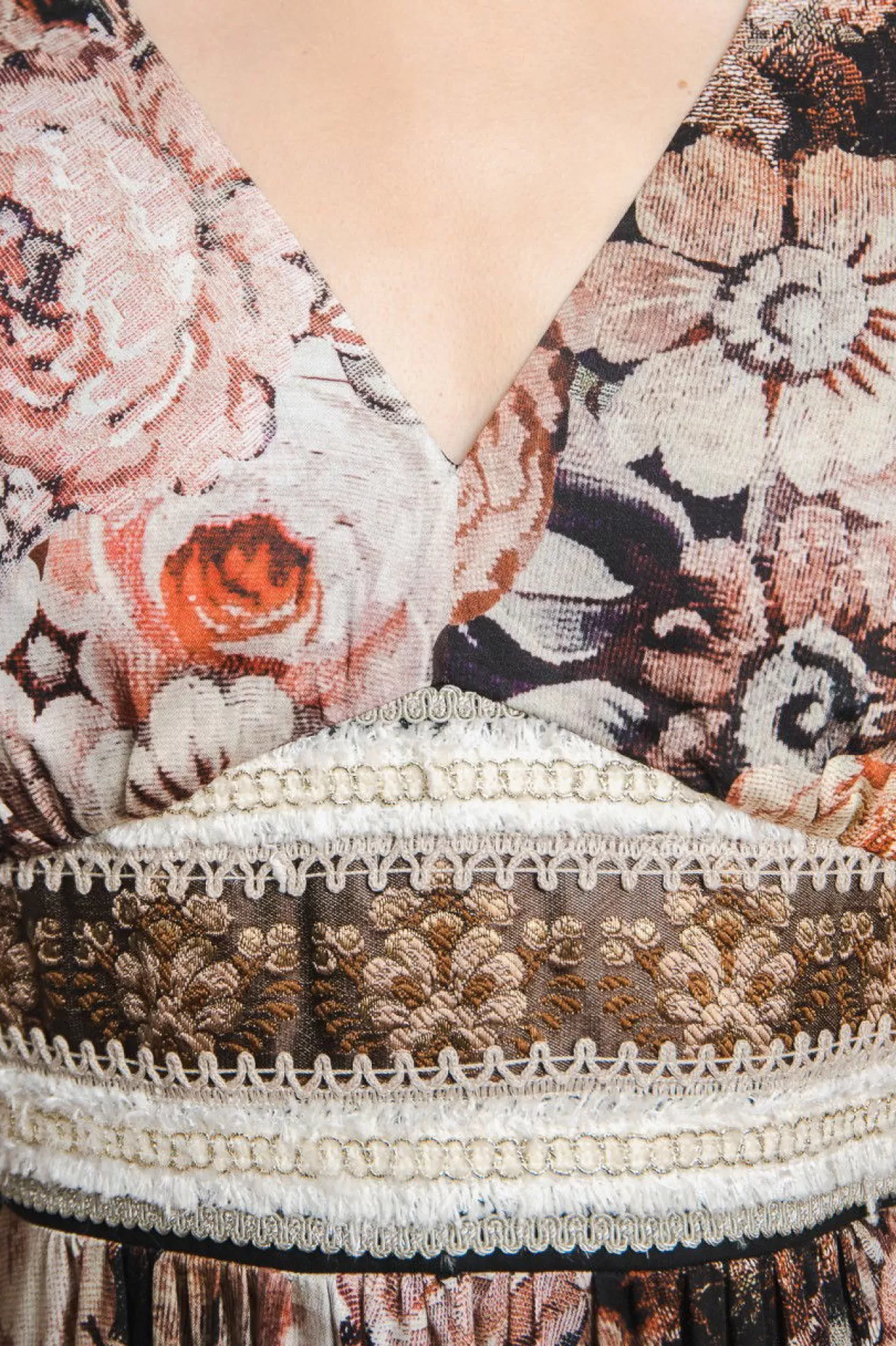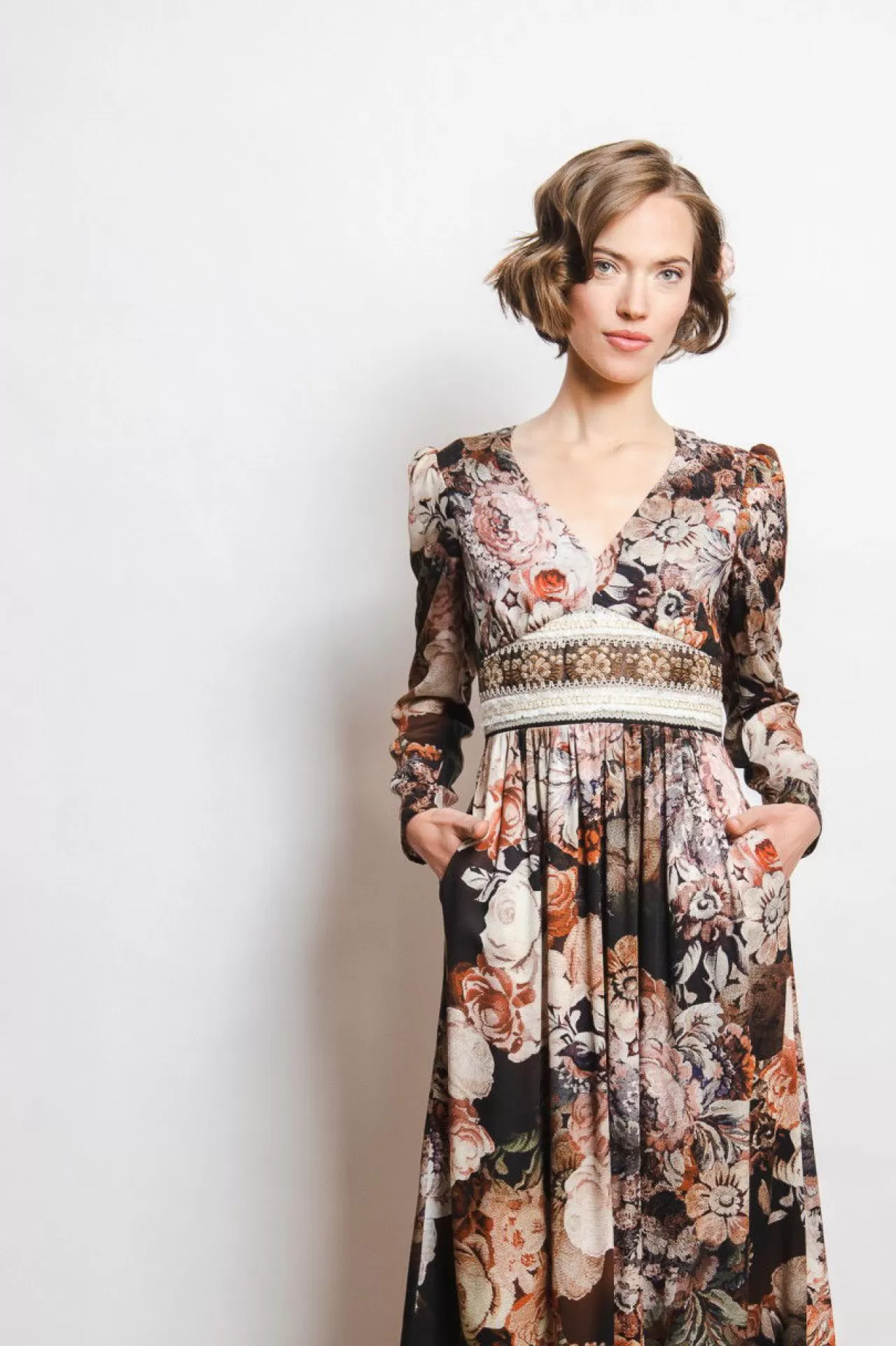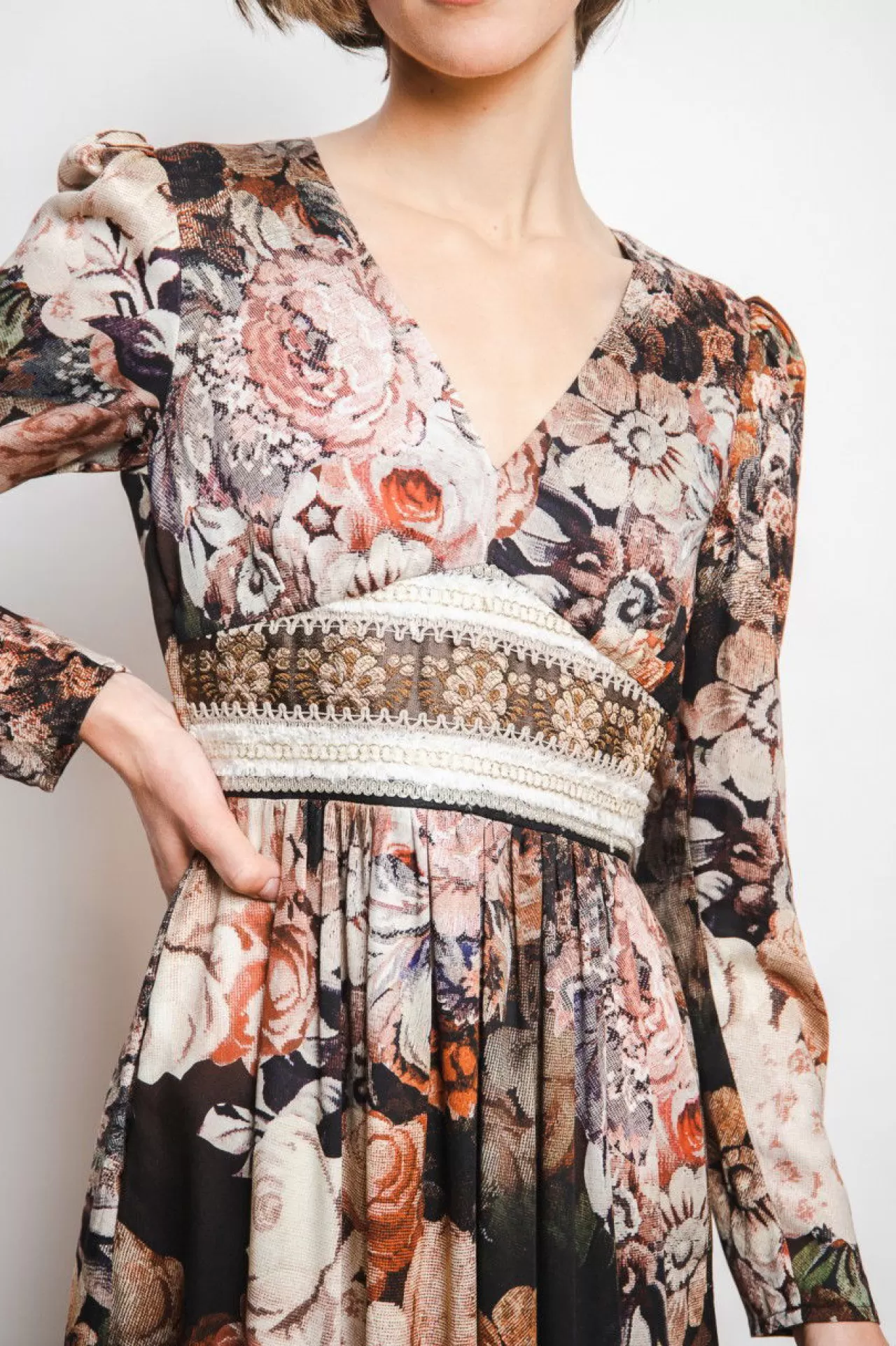 Dieses Kleid mit V-Ausschnitt und langen Ärmeln aus einer angenehmen Baumwoll-Qualität mit einem wunderschönen Blumen-Allover-Druck erzeugt den maximalen Wow-Effekt. Blickfang ist der kunstvolle Borten-Einsatz in der Taille im Vorderteil. Hier zeigt sich eine romantische Kräuselung. Lange Ärmel mit angenehmer Weite an der Schulter vervollständigen den edlen Look. Der ausgestellte Rock hat zwei Eingriffstaschen in der Seitennaht. Als Verschluss dient ein nahtverdeckter Reißverschluss in der hinteren Mitte. Das Kleid ist gefüttert. Der Fit: feminin, körpernah
