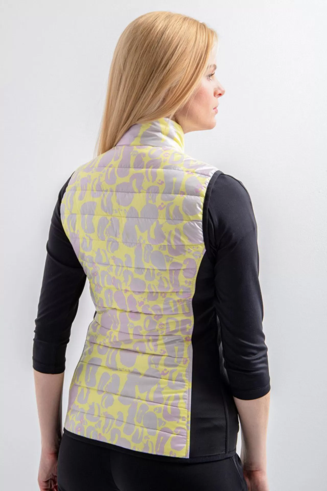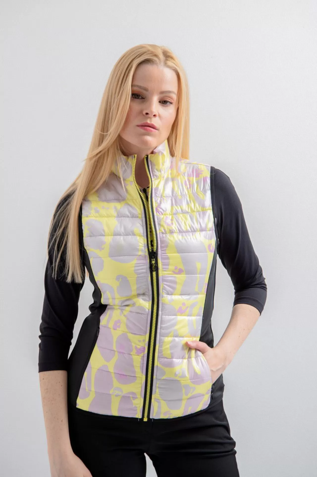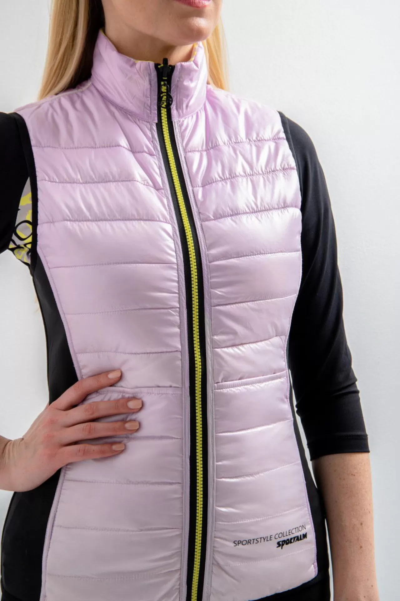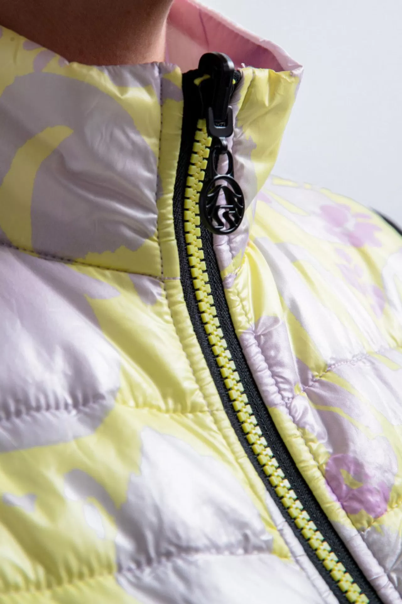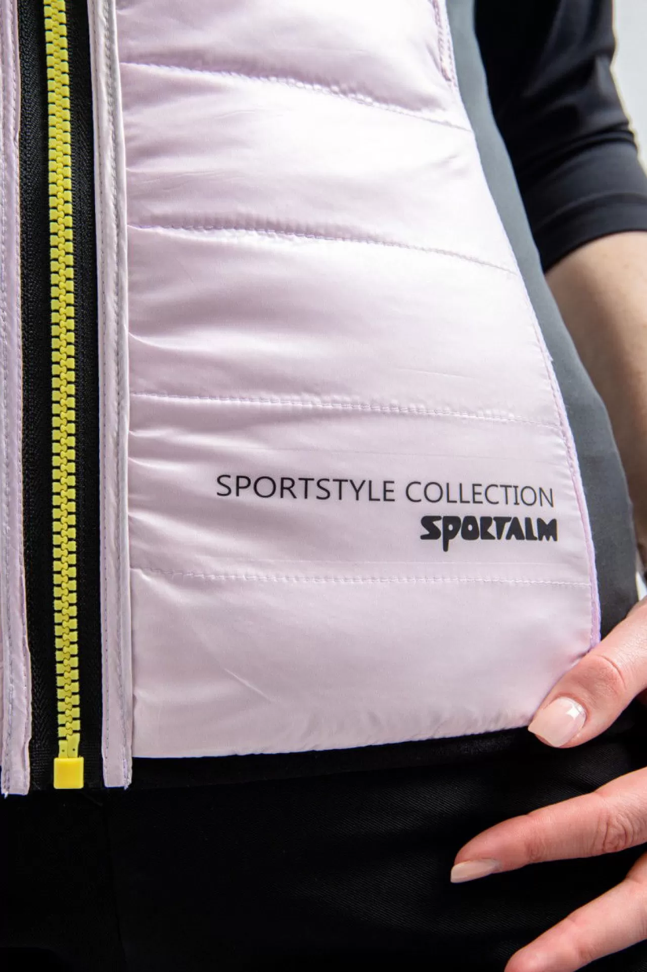 Diese wendbare Weste überzeugt vor allem durch den abstrahierten Leo Allover-Druck. Eine Seite der Weste zieht durch den farbigen Leo-Print auf der hochwertigen Nylon-Qualität alle Blicke auf sich. Durch die Absteppungen kommt der leichte Schimmer der Nylon-Qualität perfekt zur Geltung. In der Teilungsnaht sind zwei Eingriffstaschen eingearbeitet. Die zweite Seite ist etwas ruhiger, aber modisch ebenfalls ganz vorne dabei – mit einem Degradee-Druck in den Trendfarben der Saison. Hier sind zwei nahtverdeckte Reißverschlusstaschen eingearbeitet und am Saum im Vorderteil ist ein Sportalm-Logo-Transfer-Druck platziert. Für einen perfekten Sitz sorgen die Powerstretch-Einsätze in den Seiten. Der Stehkragen legt sich angenehm an den Hals und der Saum und die Armlöcher sind mit einem elastischen Falzgummi eingefasst. Als Verschluss dient ein sichtbar eingenähter Reißverschluss.